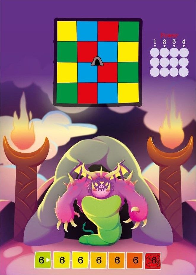 Descrizione: Explore the Boss cave and collect patterns of numbers of different colors. This will help you gain extra power to defeat the boss after you explore his lair. Then, you roll and add your power to defeat the boss.