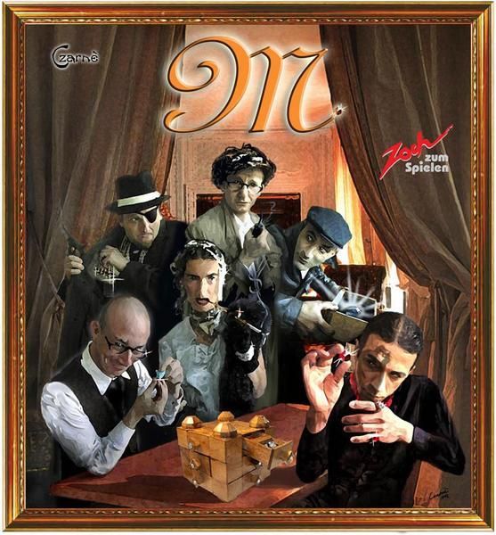 Descrizione: A very unusual game which comes in a beautiful wooden box. Central element is a sort of necklace case (in wood) comprising three levels, each of which has a drawer on each side. Each level can be rotated individually. The whole case looks the same on the top and the bottom so it can be turned around. Everybody chooses a role: wife, jeweler, detective, or master thief and tries to get the biggest loot of beautiful gems.