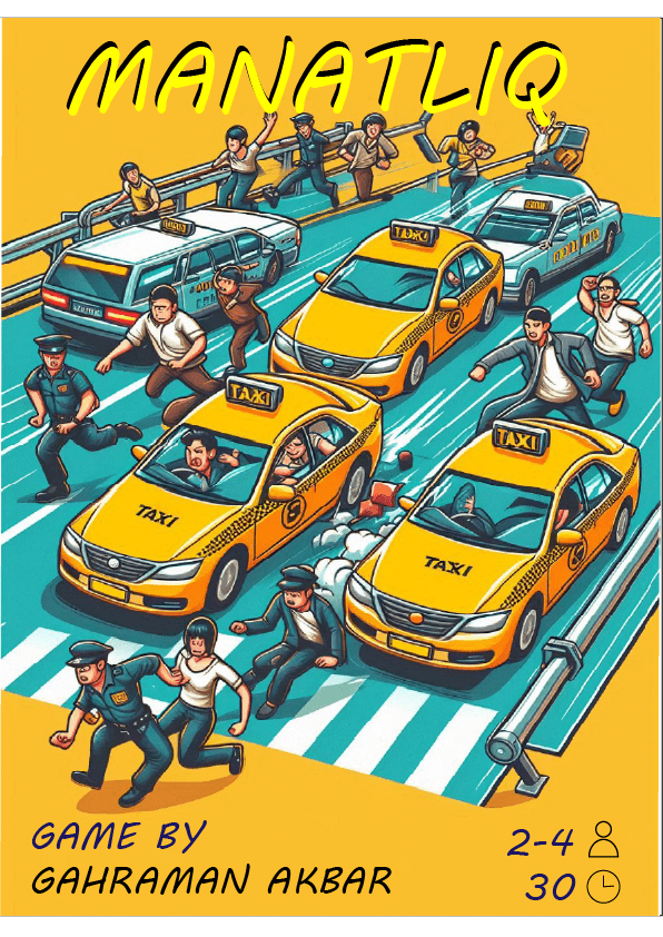 Descrizione: Manatliq is an engaging board game where players step into the role of competitive taxi drivers, each striving to attract passengers, maximize earnings, and ultimately become the wealthiest driver in the city. Players race to various locations, competing to collect valuable rewards while managing resources like fuel levels and avoiding encounters with the police. Strategic planning and quick decisions will be essential to stay ahead of the competition and claim victory.
