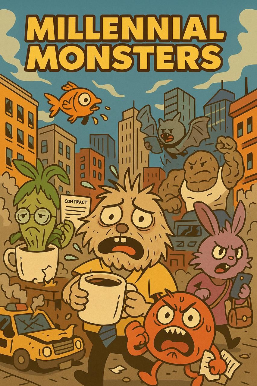 Descrizione: Millennial Monsters is a satirical strategy board game set in a chaotic modern city where overworked, over-caffeinated creatures battle for influence. From angry Stress Balls to burned-out Yoga Snakes, every monster embodies the struggles of millennial life — rent, bad bosses, side hustles, and too much coffee.