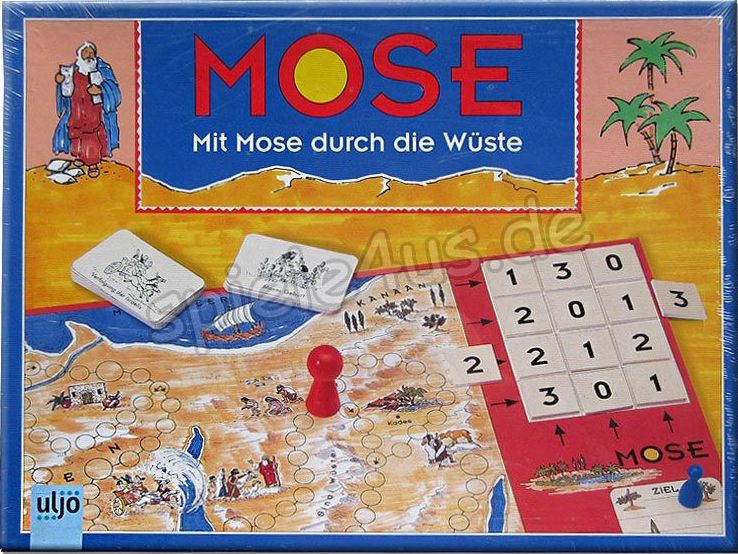Descrizione: The game covers the life of Moses, from his birth in Egypt to Mount Sinai. Question cards, a new game mechanism and the lovingly illustrated game board make Moses an interesting game.
