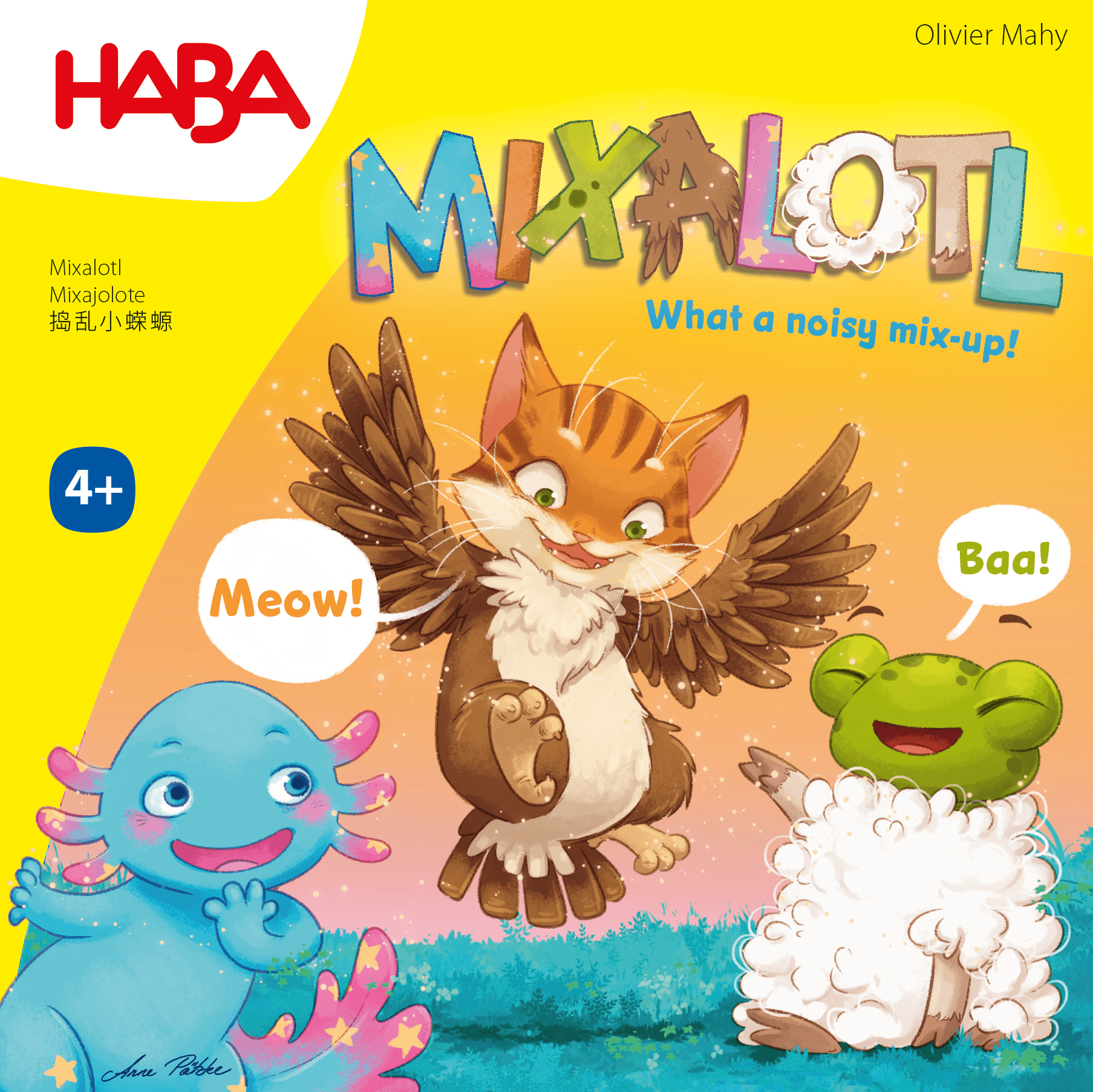 Descrizione: The dog goes “moo,” the cow goes “baa”? The mischievous Mixalotl has mixed up all the animal heads and bodies! Quickly restore order to the chaos by turning over the animal cards and making the right animal sounds – or grabbing the Mixalotl. The player who collects the most cards wins.