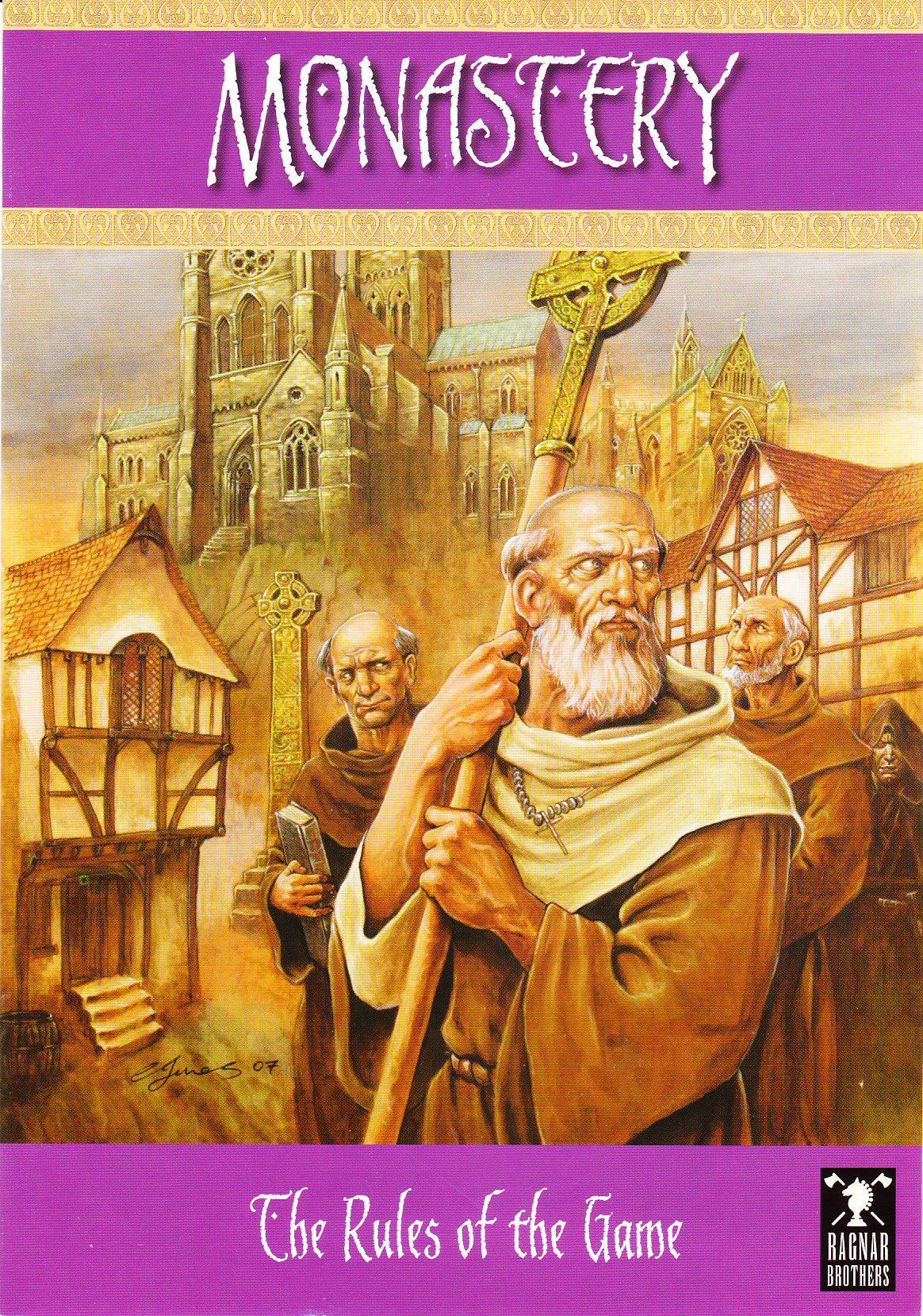 Monastery is a tile laying game in which players construct different parts of a medieval monastery. The work is done by the monks of a player. The monks may move from tile to tile and in addition to building work they can also study, toil or pray. In the ‘icon’ game monks can also make use of the special properties of some of the tiles.
