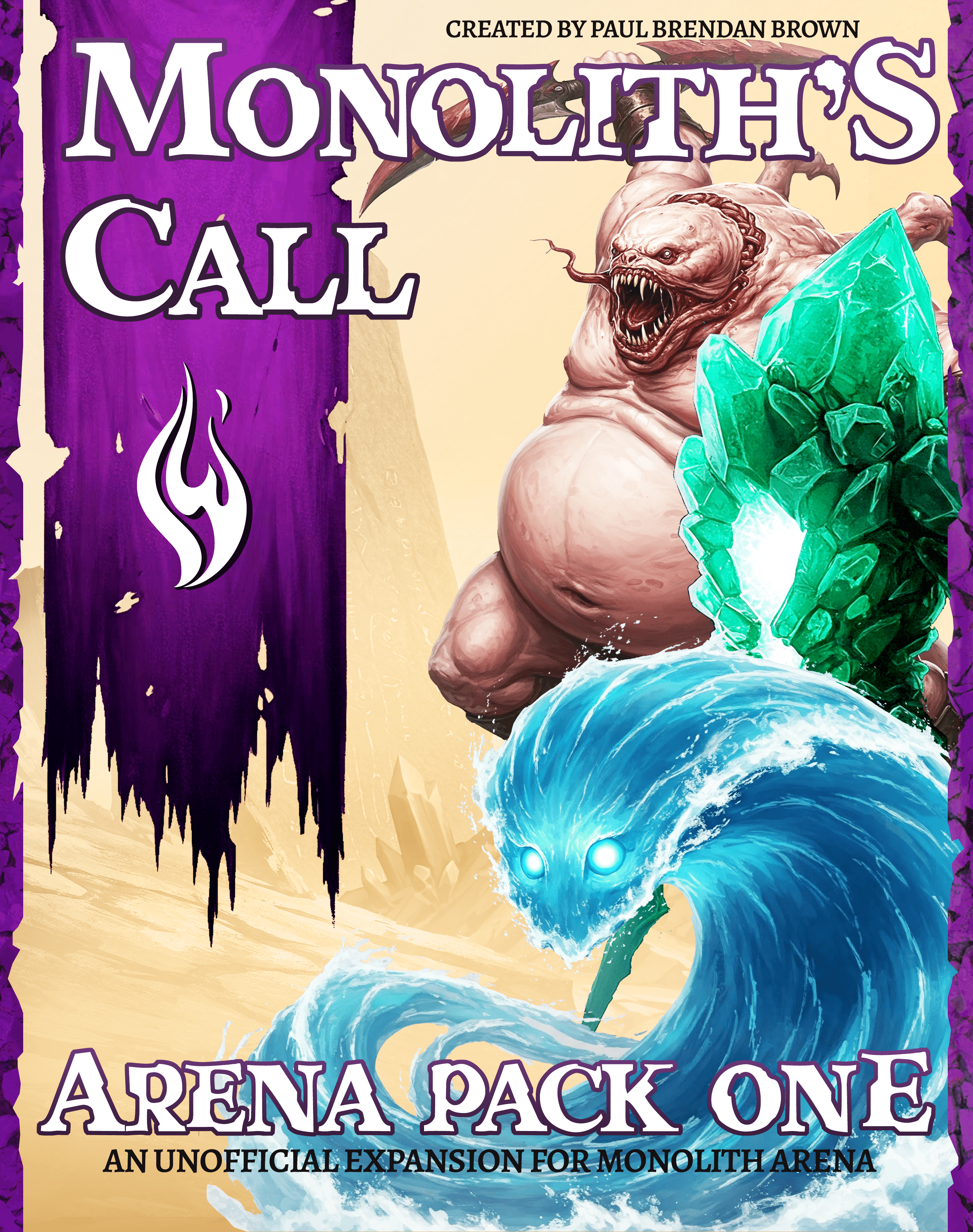 Descrizione: Monolith's Call: Arena Pack One is an unofficial, fan-made expansion for Monolith Arena which adds three brand new armies and an optional play mode for Monoliths. Command Elemental creatures with the Primordial Kin, otherworldly crystals with Stallos Enclave or trans-dimensional creatures with the Aberrant Legion.