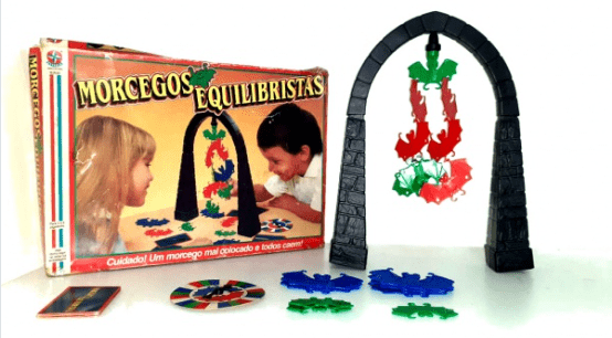 Os jogadores vao pendurando morcegos um a um e tentando equilibra-los para que um lado nao fique mais pesado que o outro. entretanto, morcegos tem diferentes tamanhos, os jogadores devem girar a roleta e pendurar o morcego da cor sorteada. aquele que pendurar ou estiver pendurando o morcego e todos cairem, perde o jogo.