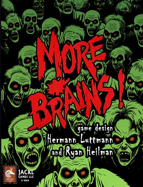 Descrizione: More Brains! is a 1 – 4 player competitive board game (with options for cooperative and solitaire play) where each player represents a small group of "Alpha" zombies. These Alphas are much smarter than your average zombie and, being more advanced and exceedingly clever, they have shambled forward to organize and lead hordes of regular (i.e., dumb) zombies in an assault on the city of Romero Bay. Why Romero Bay? Inside the city's medical facilities, human scientists are working on the dreaded "Z-Kill" drug - a substance specifically created to permanently eradicate the zombie hordes. And the Alphas only hope of overwhelming the humans is …. get more brains! The more brains they consume, the smarter the Alphas become. Players must push-their-luck by driving their Alphas and accompanying zombie hordes forward against the “wall of fire” emitted by the defending humans in the city before Z-Kill is perfected and deployed. The player that can accomplish this task the best and visit the largest zombie nightmare onto the city will be declared the winner of the game and the title of “Head Zed” - the supreme leader of all zombies!