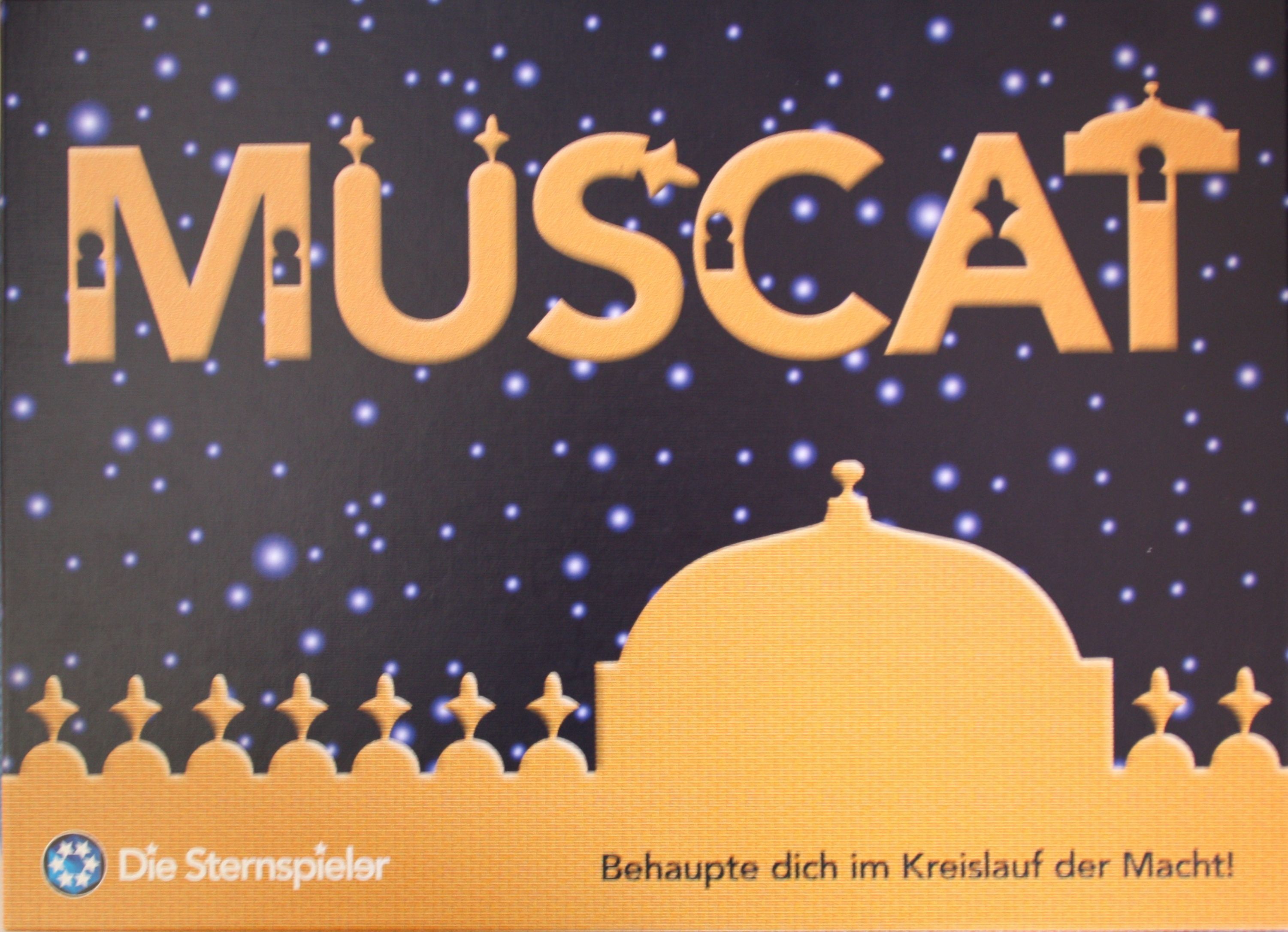 Descrizione: Muscat can quickly be described as "advanced rock-paper-scissors," but is much better than this may make it sound. There are 4 different types of items in this version, which are the different kinds of street performers in the marketplaces of Muscat. The tiles representing the performers are placed in these marketplaces in such a way as to establish local dominance hierarchies, which are resolved by kicking the loser out on the street and promoting the winners to higher-class sections of Muscat. Eventually, once can reach the Sultan's palace, and when enough performers have everyone scores points according to how high their performers have advanced up the board.
