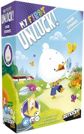 Descrizione: My First Unlock! is an Unlock! game for children aged 4 years and over. Explore three adventures with the help of Hucky Duck! My First Unlock! is a cooperative game. Choose one of the three adventures to play together with the help of Hucky Duck. To win, you need to connect all the adventure’s missions in the right order. Look carefully at the cards to find the solutions and you may discover some surprises!