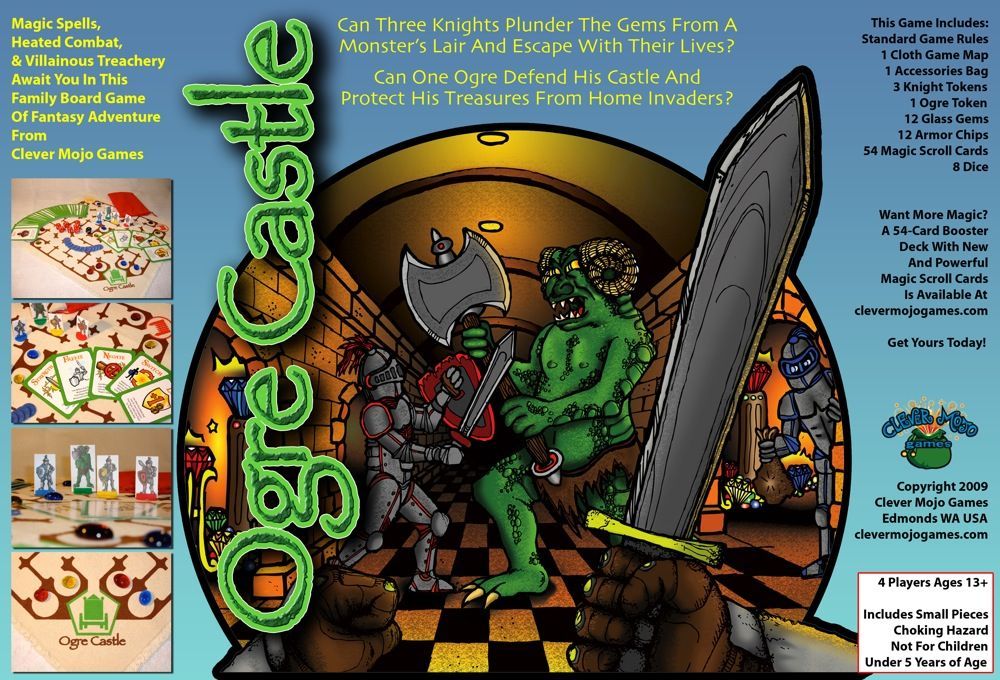 Descrizione: A game of greedy invading Knights and an Ogre protecting its turf and treasure. In Ogre Castle, three players become knights invading a castle in search of treasure, while a fourth player becomes the Ogre, owner of the castle and the treasure. The Ogre seeks to repel these home invaders and save its goods through magic and sword-play.