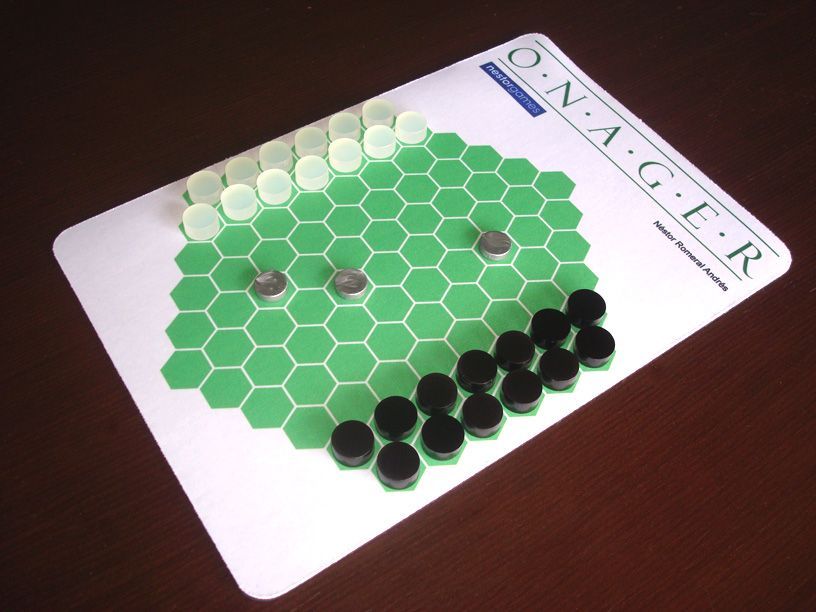 Onager was inspired by the game Epaminondas, a masterpiece designed in 1975 by Robert Abbott, and also published by nestorgames. Onager uses simple mechanics with a classy feeling similar to those in Chinese Checkers, Halma, or Bashni.