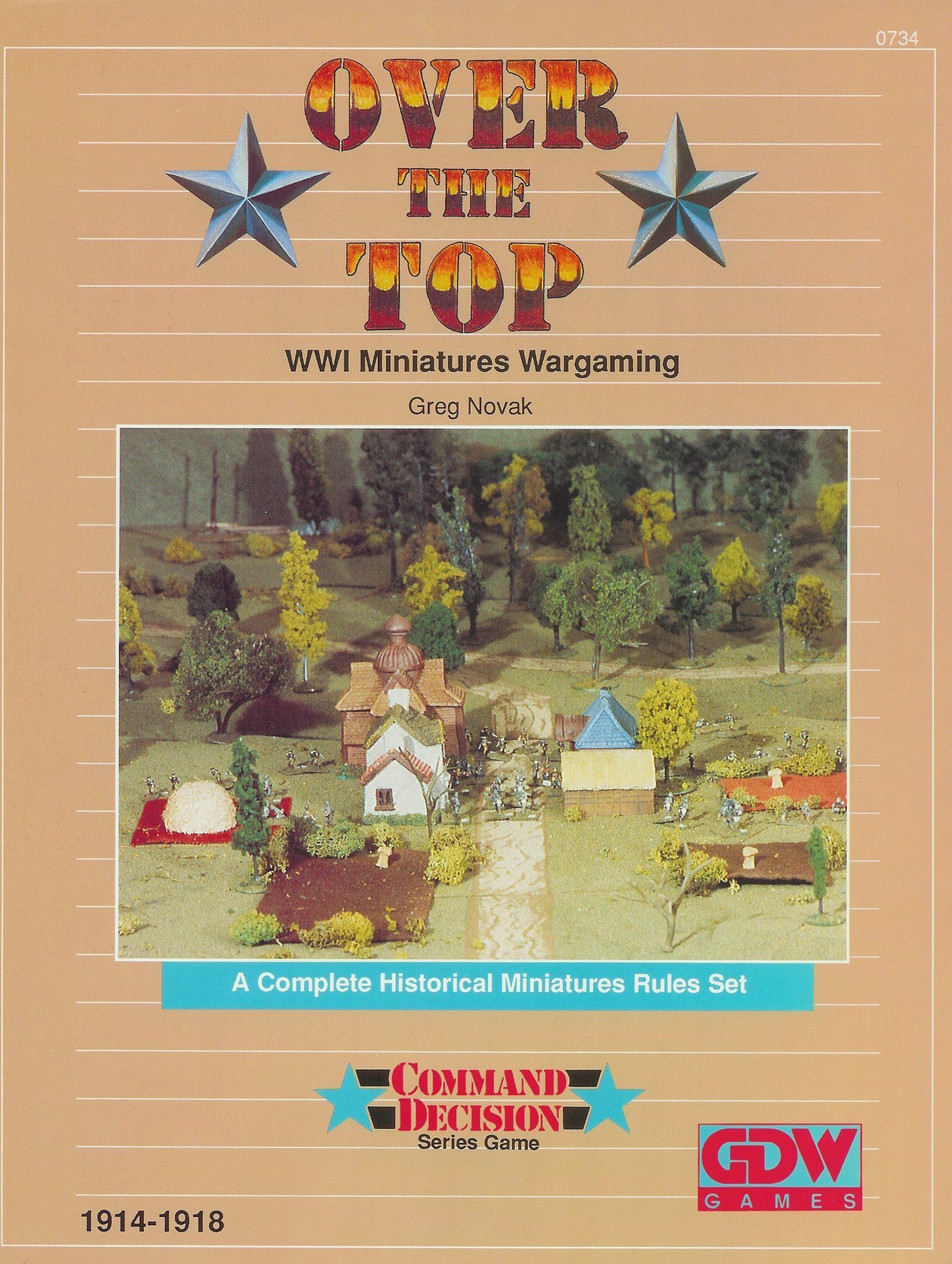 Descrizione: Over the Top is the WWI version of the original 1986 Command Decision (WWII operational level miniature rules). Uses platoon level stands and a vehicle scale of 1:5. Uses the same basic system as the WWII counterpart but also covers special situations specific to WWI (trench warfare, air power, chemical warfare, tanks).