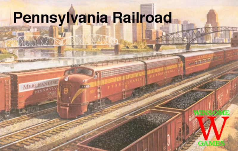 Descrizione: Pennsylvania Railroad is a big game, with a three panel mapboard, and it has the Pennsylvania Railroad, the New York Central Railroad, the Baltimore & Ohio Railroad, the Chesapeake & Ohio Railroad, the Boston & Maine Railroad and the Pittsburgh and Lake Erie Railroad. The map stretches from Maine to Virginia, Missouri to Canada.