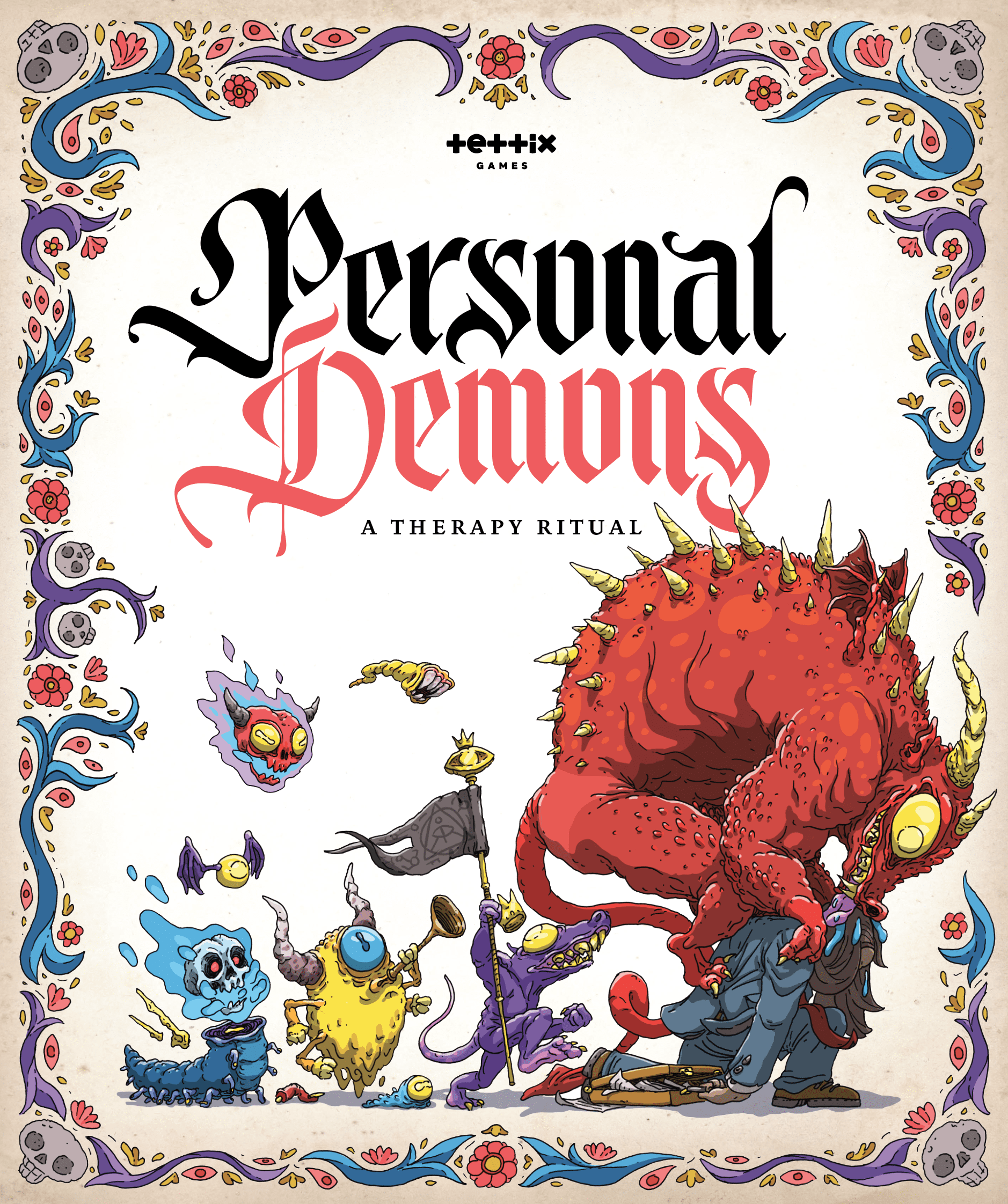 Descrizione: A group therapy ritual where 1-4 players summon and seal away their own personal demons. This fast-paced, simultaneously action drafting style game has each player populating their own summoning circles in a tableau-style puzzler, aiming to form complete seals and conquer their demons. Greater Demons and Arch Demons can be summoned and sealed once their requirements are met, and each one gives all players unique abilities that can change the way you play the game. Build an engine, choose your path to victory and score the most over three rounds to show your demons who's boss. An optional upgrade pack adds the option to play with 5 or 6 players, and all of the components will fit into the base game box! —description from the designer