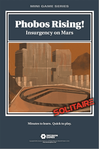 Descrizione: Phobos Rising! Insurgency on Mars is a solitaire game depicting the heroic actions of an elite team attempting to secure key facilities on Mars. Success means Mars has been secured and the Martian Revolution, depicted at the start of the Free Mars game, begins with a general uprising across the colonies bases and ships in the Solar System.