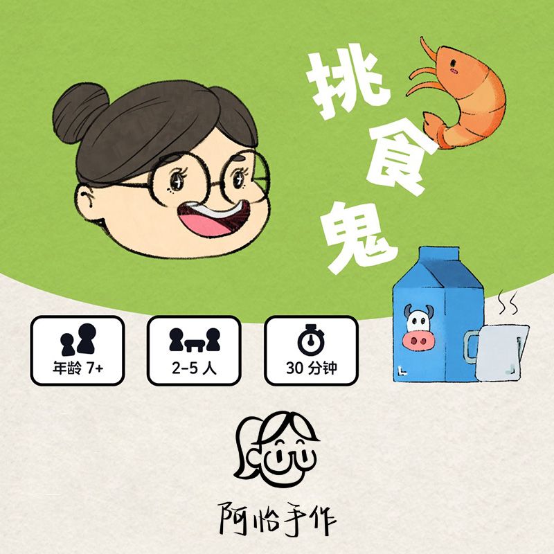 Descrizione: Players are picky kids sitting at the dinner table. Each has 2 types of food they don't like, and they must keep them secret from other players.