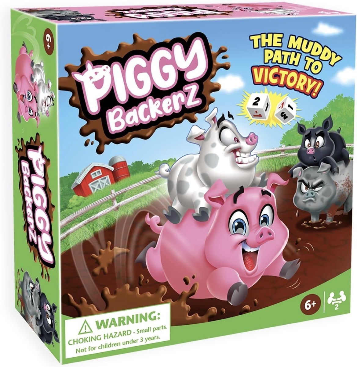 The game dice allow players to move their piggy game pieces forwards or backwards. Black indicates a move forward. Red indicates a move backwards.