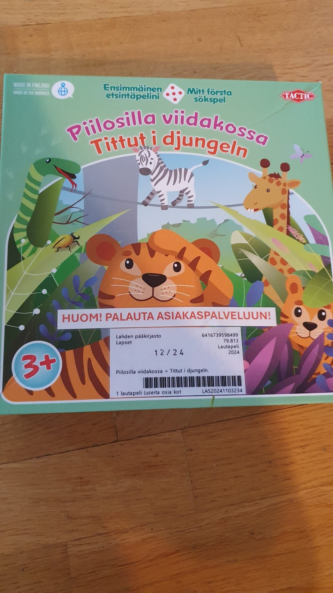 Descrizione: Playful baby animals are playing hide and seek, but they’ve found hiding spots that are a little too good! Bring the cute little ones and their parents back together. Find the right animals on the game board and guide them safely home. Can you find them all? Players turn cards to do the actions. Green card shows which animals do the action and the blue card show whether the animals move or try to find the babies. If all the 8 animals find their babies in their path before the cards run out, the players win. If cards run out, players lose.