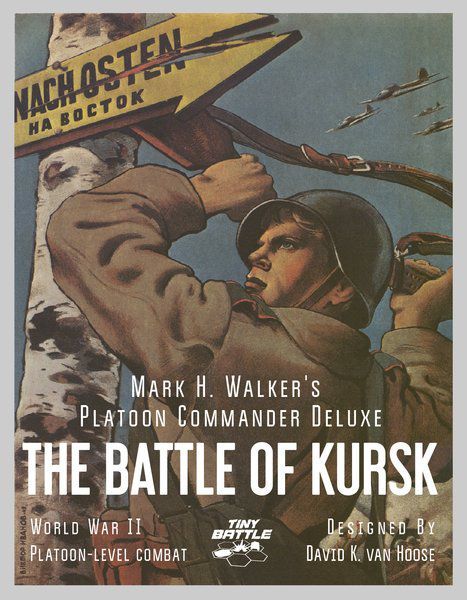 Descrizione: Publisher's advertising text: 'Kursk. Many historians believe it was the turning point of World War II. Kursk. Witness to the largest tank battle of the entire war. Kursk. The end of the myth of German invincibility. Kursk. Just one hell of a lot of fun to game with 1” square cardboard counters representing platoons of infantry and tanks and batteries of anti-tank guns, mortars, and stuff. And that is what you get with Platoon Commander Deluxe: Kursk.