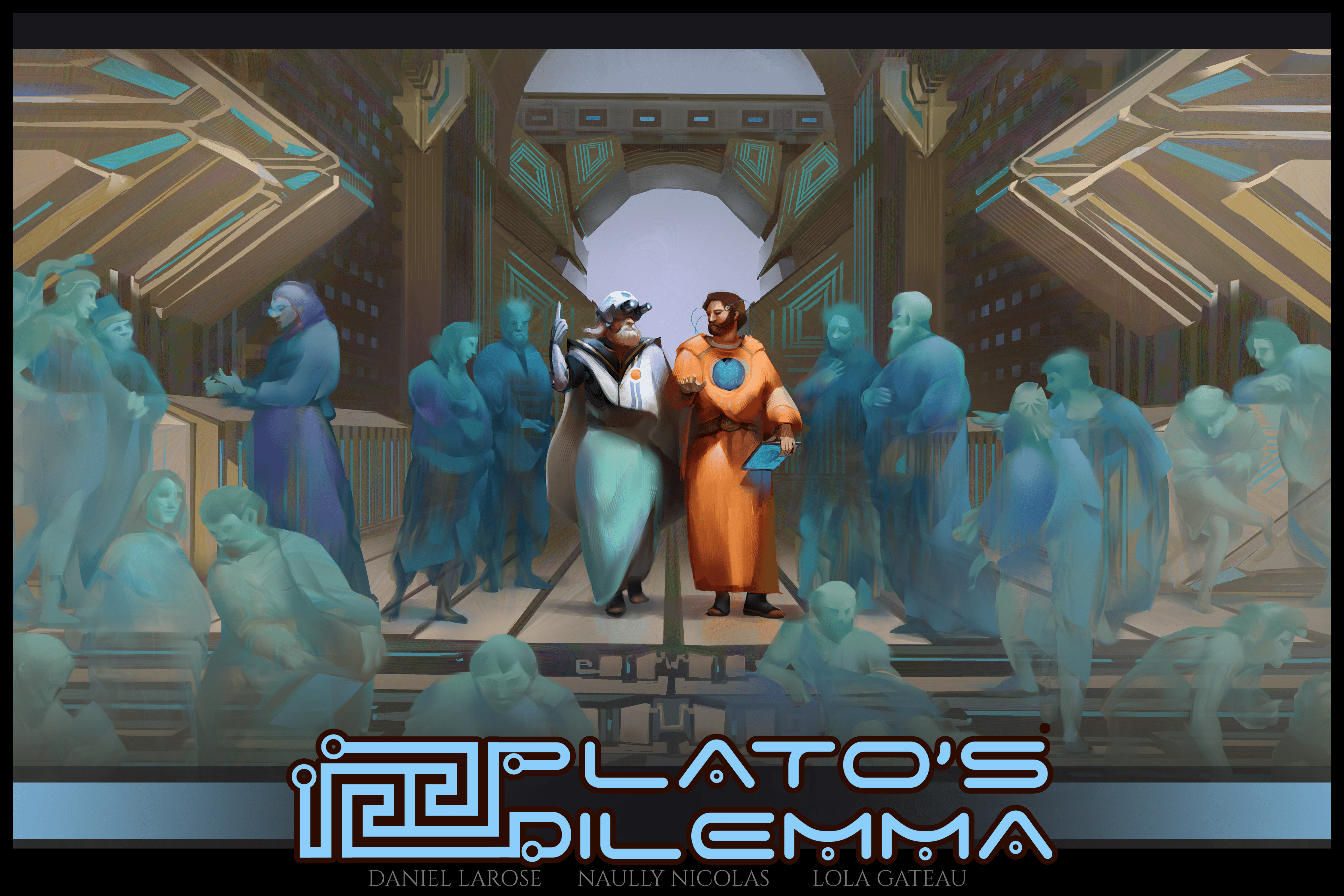 Descrizione: Plato’s Dilemma is a serious game blending hidden roles, resource management, and ethical debate. Set in a futuristic cyberpunk universe where Greek mythology meets artificial intelligence, players embody mortals inhabited by Olympians, Titans, or legendary humans seated on the board of Hésiodis Global Corporation. Their goal: decide the future of AI, shape society, and determine who will dominate the coming era.