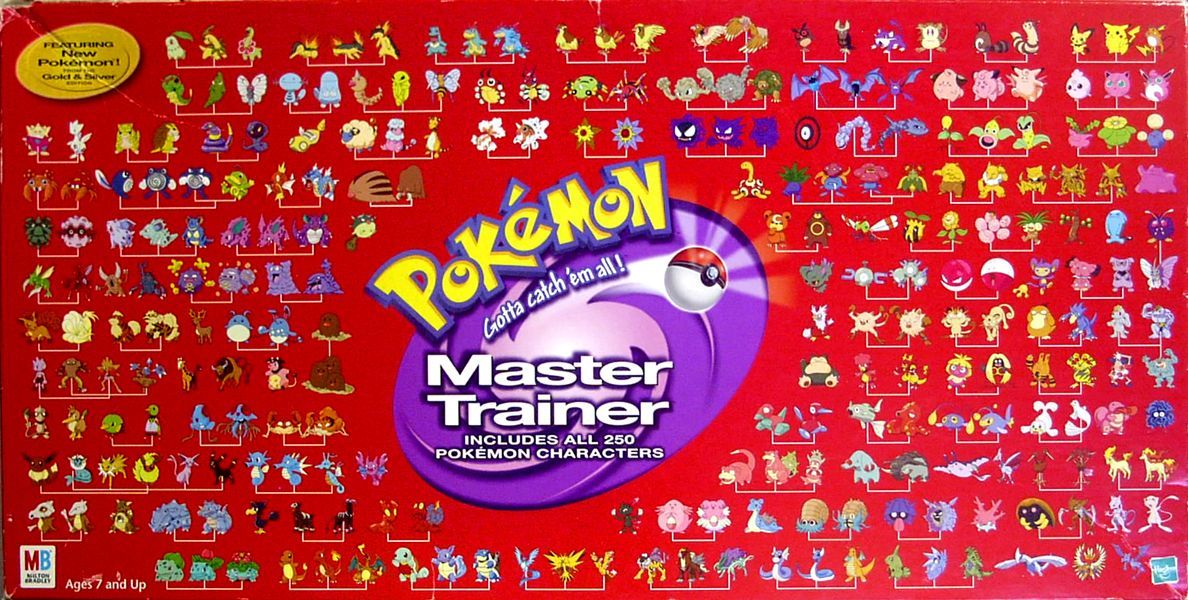Descrizione: A sequel to Pokemon Master Trainer(even though this game has the exact same title), players roll dice and move their Ash pawns around the Johto Island board collecting, trading and battling Pokemon chips. Each battle won makes a Pokemon stronger. Collecting Pokemon of the same evolution set allows the player to combine their attack scores. Item cards also boost players' odds of winning battles. When all the gym bosses on the board are beaten, players total their Pokemon power and badge points to decide the winner.