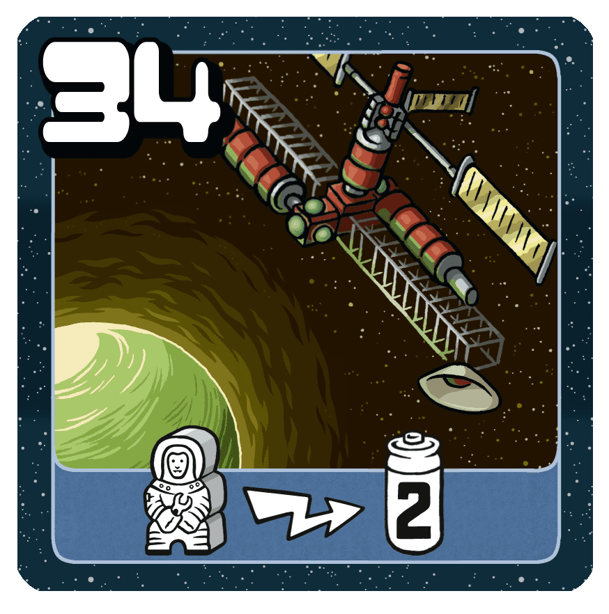 Descrizione: Power Grid: Outpost - Space Station is a promotional card for Power Grid. The promo card is available at Game Market Autumn 2025 in Tokyo. The Space Station card is a technology card. It is shuffled together with the 32 cards with the plug on the back. If you purchase the Space Station, place it face up next to your company board. Similar to the Moon Base, the Space Station is a power plant, but as it is floating in space you do not need to place it on your company board. This card needs 1 worker, who produces 2 electricity in phase 4 (Bureaucracy). —description from the publisher