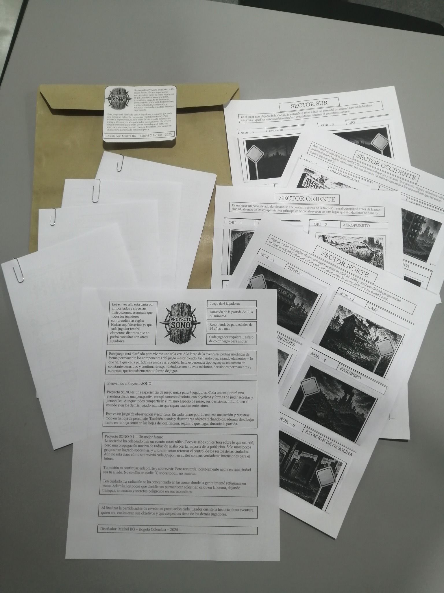 Descrizione: Project SONO is a one-of-a-kind tabletop experience for 4 players, where each player explores a post-apocalyptic world from a unique and secret perspective. With personal objectives and asymmetric gameplay, everyone shares the same physical space, but their actions influence each other in mysterious ways. Set in the ruins of a collapsed society ravaged by radiation, players must observe, take notes, use and discard items, and alter both their personal and shared location sheets through drawings and decisions. The goal is to survive—and earn the most victory points through your choices. But beware: trust is a luxury, allies are uncertain, and the city hides more than it reveals. Adapt, endure… and above all, don’t die.
