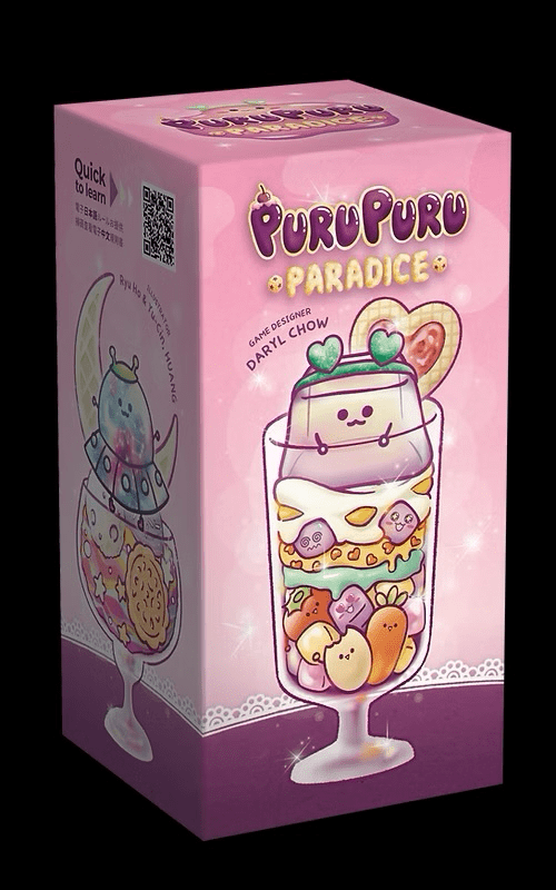 Descrizione: Players play as Puru Puru and her friends, who are all striving to live a puru-fect life full of Love and Excitement so they can enter PARADICE. But beware, bouncy jellies don’t last long on the table! The game is played in turns starting from the starting player clockwise. Each player’s turn consists of rolling the dice and resolving the result of the dice. The game ends immediately when either one player obtains 20 Love or Excitement, or one player drips to 0! The key mechanic in this game is if you roll too much of one side, your neighbours get that result instead! That applies to both good - and bad sides. Don't forget to try the advanced game where each jelly has their own unique game-changing power! —description from the publisher