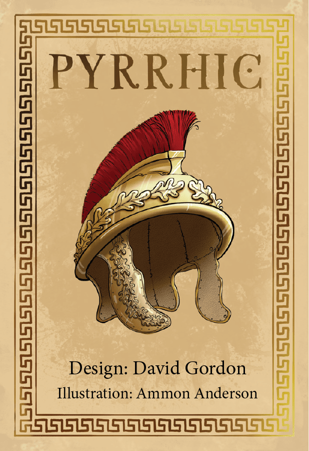 A small run of under 100 copies of Pyrrhic was self-published for the 2025 PAX Unplugged Indie Night Market. Therefore it did not undergo the extensive development and testing most games go through before release. As such, the following clarifications are necessary for the rules: