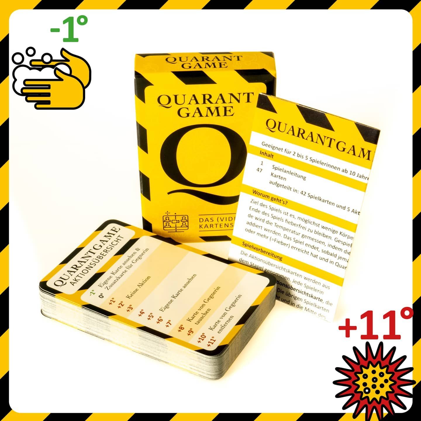 Descrizione: Whether gathered around the table or playing via video call — with Quarantgame, you’re always flexible. Try to keep your body temperature under control and send your opponents into quarantine. It takes skill and a good memory. And don’t forget: stay healthy! The goal of the game is to collect as few body temperature points as possible and to remain fever-free at the end. The game is played over several rounds. After each round, the temperature is checked by adding up the values of the remaining playing cards. The game ends as soon as someone reaches a body temperature of 38° Celsius or higher (= fever) and must go into quarantine. Sustainably produced board game offering entertaining distraction during lockdown times.