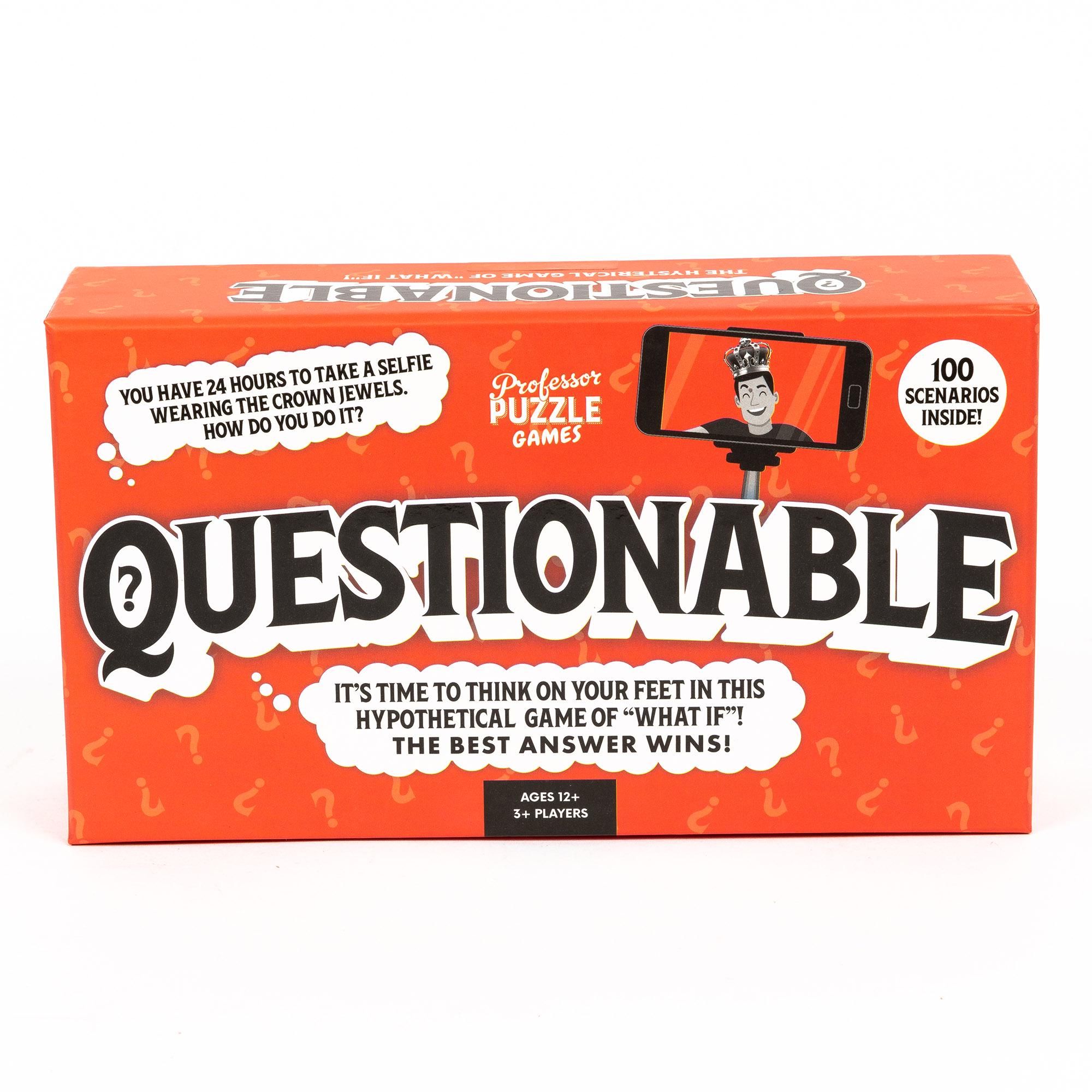 Descrizione: Get ready to get random with this game of questionable situations! With 100 madcap, made-up scenarios, two teams compete to see who can give the best answer. From far-out and fantastical to truly smart ideas, you'll have to really think outside the box for a chance to scoop up the points.