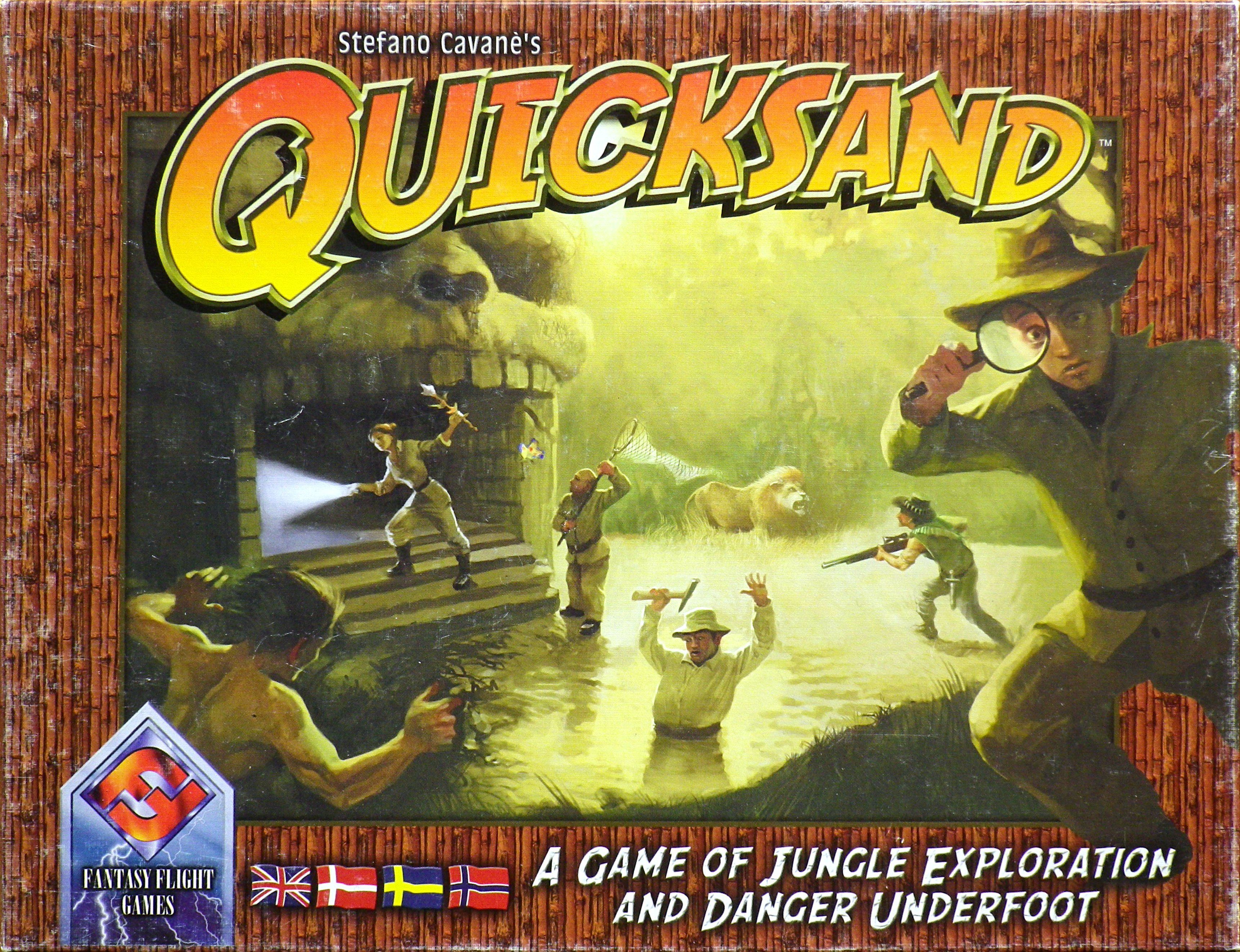 Descrizione: In Quicksand, you and your opponents each secretly control one of six jungle explorers racing to discover (i.e., land on) the temple location. There are Explorer cards, Quicksand cards, and Wild cards. Your hand size is always six cards. By playing cards strategically, you and your opponents, move the six explorers towards the temple.