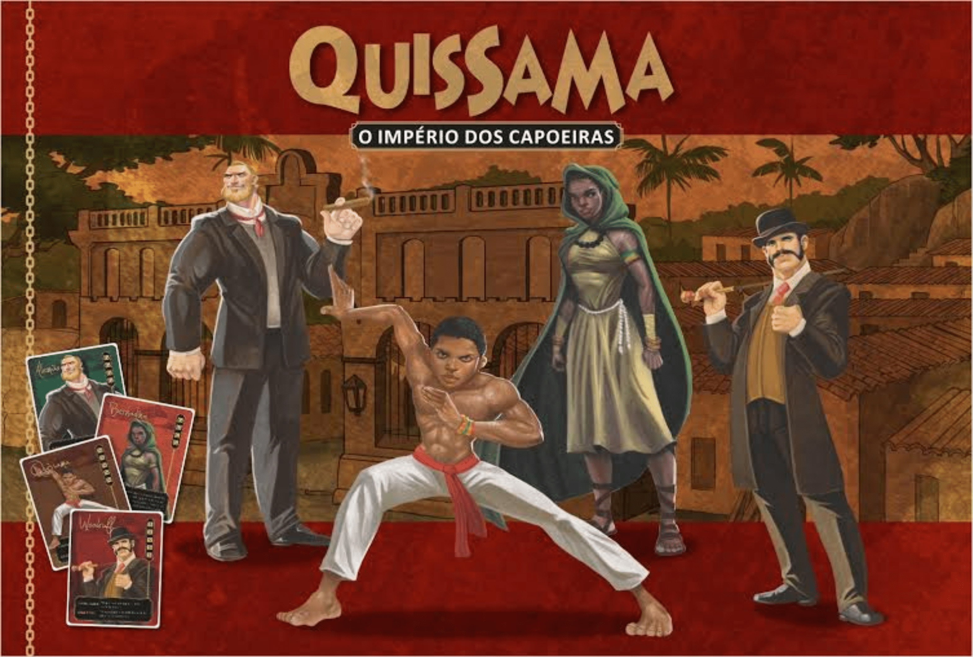 Draw, combine and use your cards to establish your territory in Rio de Janeiro, 1868. Place your meeples and prosper thanks to coins that will help open trades, free slaves and employ capoeiras. With some card combinations, get the right to choose a character. Use your skills and reach your goal to win the match. But be careful with your opponents! They can cause malta attacks against your territory, deploy your ministers or steal the characters you worked hard to win. Go through all scandals and the power of money and be the first to reach one of your characters' goal!