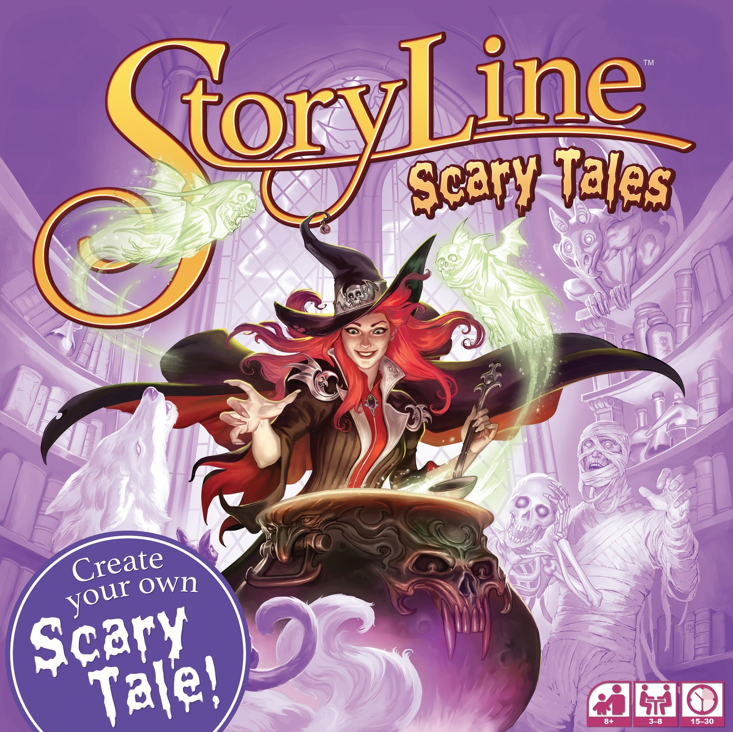 Continue your own fanciful adventure stories with the spooky addition of Scary Tales, the second installment of StoryLine! In this simple, beautifully-illustrated card game, three to eight players create a story together, with each player contributing characters, places, objects, and events to the narrative. Two narrator decks and over a hundred story cards are included to provide ample replayability, and Scary Tales introduces cards to add fright and mystery to your tales. Will your villain be a Wicked Vampire or a Mad Scientist? Will their lair be in a Mysterious Swamp or a Haunted Chapel? prepare yourself for a frightful evening; this story is yours for the telling!