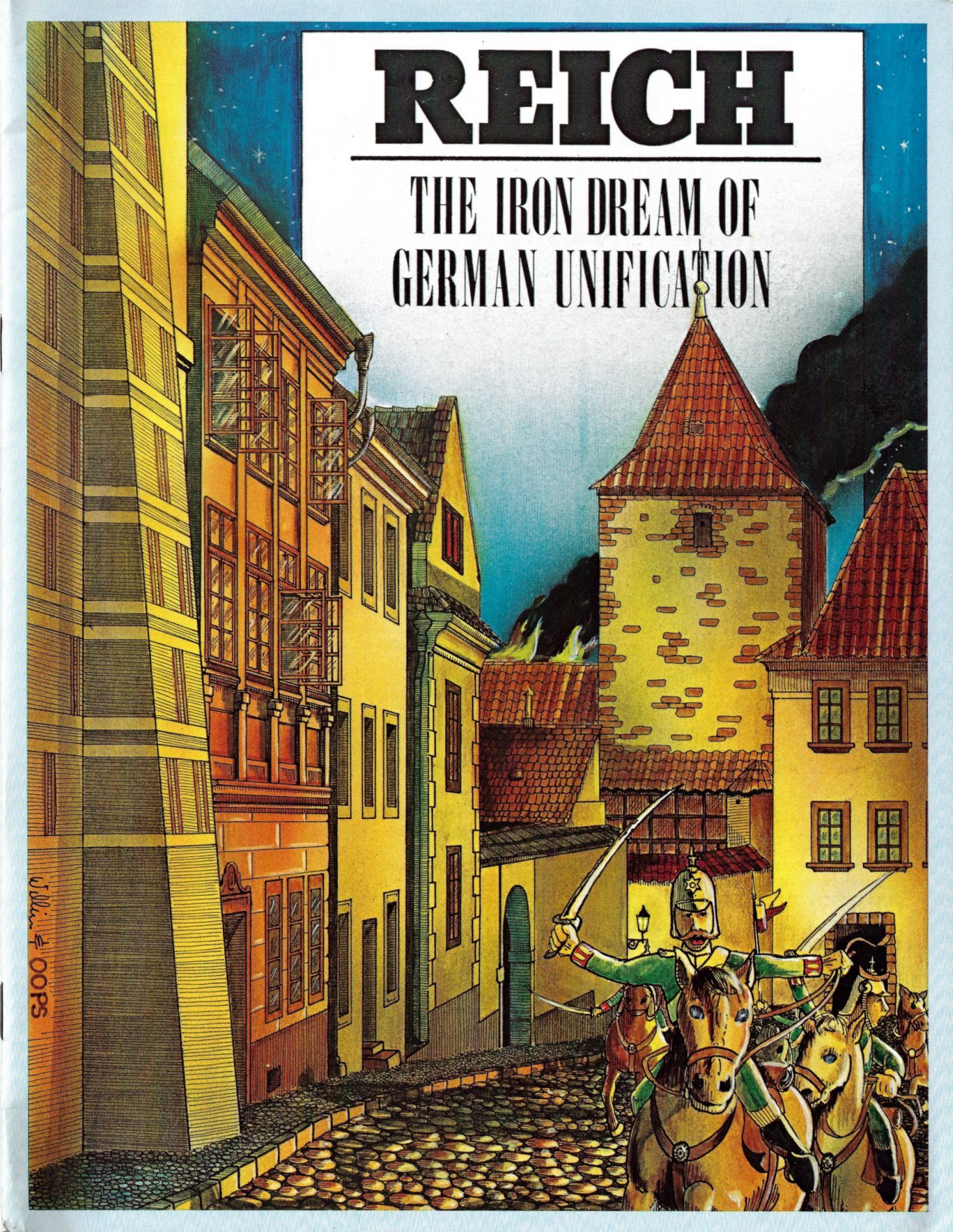 Each player becomes a Prince attempting to unify a fragmented Germany by means of adroit diplomacy, cunning bargains, and sudden mobilizations and armed strikes. Each turn allows for card play and interaction, then demands that the phasing player choose one of four exclusive policies in the ensuing Action Phase. Player intelligence, elan, and flexibility determine a game's outcome, with little reference to luck. Opportunities for conclusive action are many, but must be seized decisively and courageously. Winning or losing, REICH is a memorable and enjoyable experience for every player.