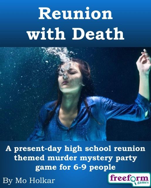 Descrizione: Reunion with Death is a downloadable present-day murder mystery game for 6 to 9 people where the host can play too. Mikolette Lukanis, former prom queen, has been killed just before the 15-year high-school reunion gala party. But who is the murderer?