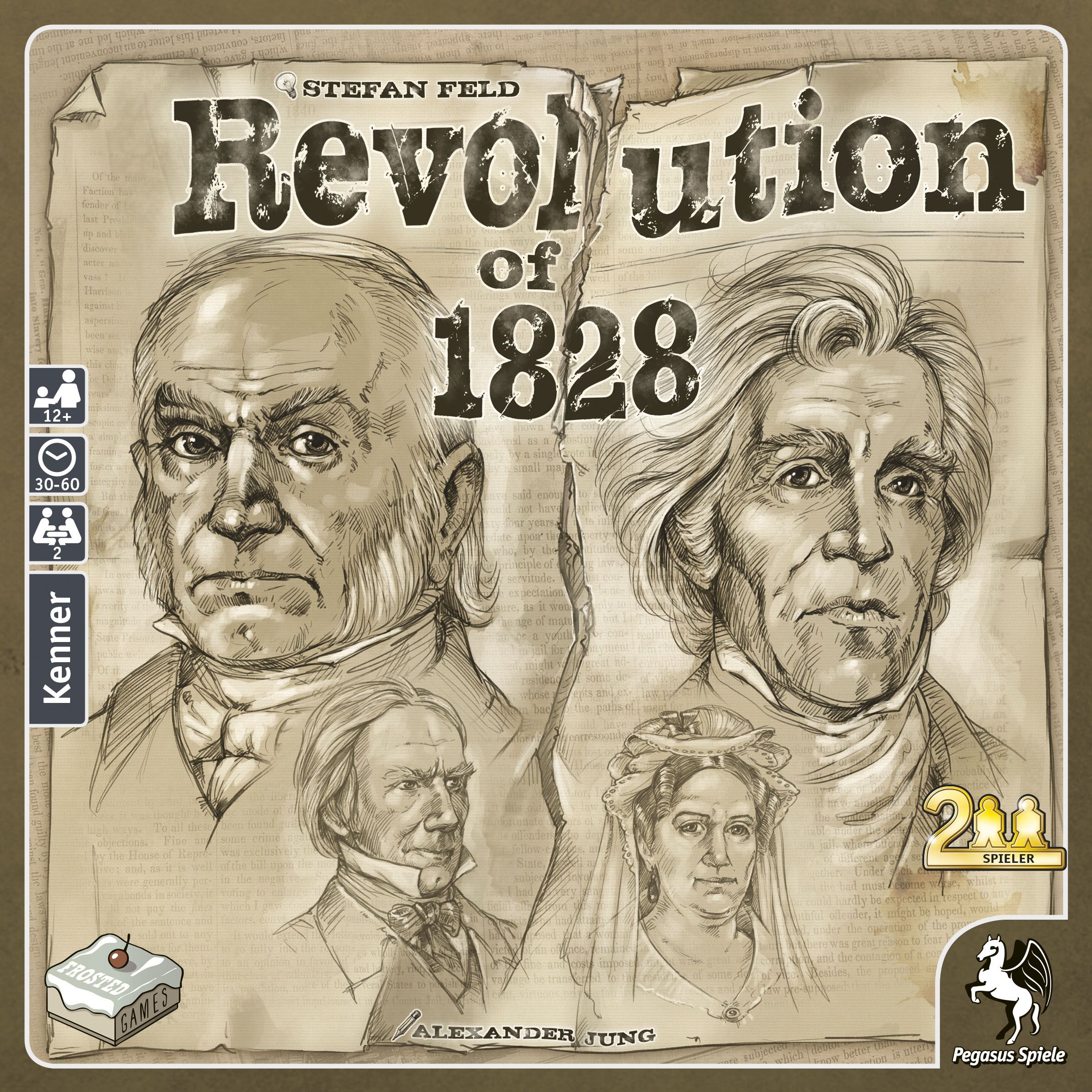In the two-player game Revolution of 1828, you are trying to become the next President of the United States! To reach this lofty goal, each player tries to take the election tiles that suit you best and hinder your opponent's campaign. Election tiles allow you to garner the allegiance of electors and use the power of smear campaigns to skew the populace in your favor. If you also use the powerful campaign actions to your advantage and have the press look the other way, nothing should stand in your way!