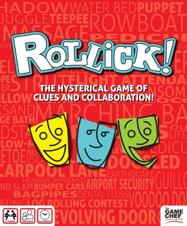 With ROLLICK!, the entire team collaborates together to act out clues for one or more players to guess. It’s a hysterical, fun, fast-paced, team competition game that’s an absolute riot at parties, family gatherings, work events, holiday celebrations, with friends, and even loved by teenagers!