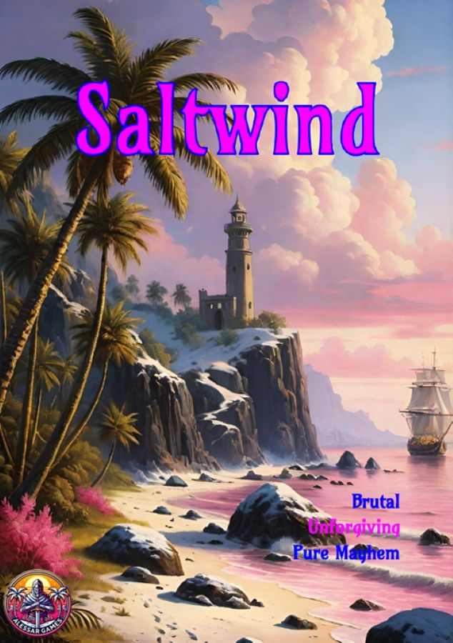Descrizione: You wake up suddenly on the sand… You had a clear destination in mind, but the sea betrayed you. The ship you traveled on is now scattered wreckage on an unknown shore. One by one, you awaken, dazed, with the salty taste of the sea still on your tongue and a veil of mist shrouding everything around you. Only four of you remain. You soon realize you’re not alone… 1. What Makes It Unique? Saltwind is a brutal, story-driven skirmish game unlike anything you've played before. With scenario elements revealed turn by turn, and the game mode shifting from cooperative to free-for-all mid-session, every playthrough is unpredictable and tense. Characters don’t have hit points, instead, their core stats (Strength, Weakness, Intelligence, and Madness) fully define how they act, survive, and die. 2. What to Expect on the Table Stat-based survival system: No HP. Your stats are your lifeline, when one hits the limit, you die. Fluid character state: Strength, Madness, Intelligence, and Weakness constantly shift during play. Gruesome injury tables: Damage isn’t generic, each wound is detailed and permanent. Persistent status effects: Bleeding, poison, corrosion and more add constant pressure. Dynamic scenario system: Missions evolve as you play, often turning allies into enemies. Over 1200 possible scenario combinations ensure endless replayability. Scavenge, craft, heal: Patch yourself up mid-battle, or die trying. Permanent death and item persistence: Dead characters leave behind loot for future survivors. Single, universal master table handles everything from combat to actions, simple yet brutal. 3. What You Need to Know Model count: 4 per player. Miniature scale: 28–32 mm. Board size: 60x60 cm recommended. Game length: 45–90 minutes. Players: Any, solo, coop, semi-coop, or full free-for-all). Components required: standard dice, status tokens, character trackers. 4. Modularity & Expandability Compatible with most generic post-apoc/fantasy miniatures. Designed for easy scenario expansion. Support Web app available on Alessar Games Official Website. Perfect for narrative-driven players and fans of punishing, emergent gameplay. —description from the publisher