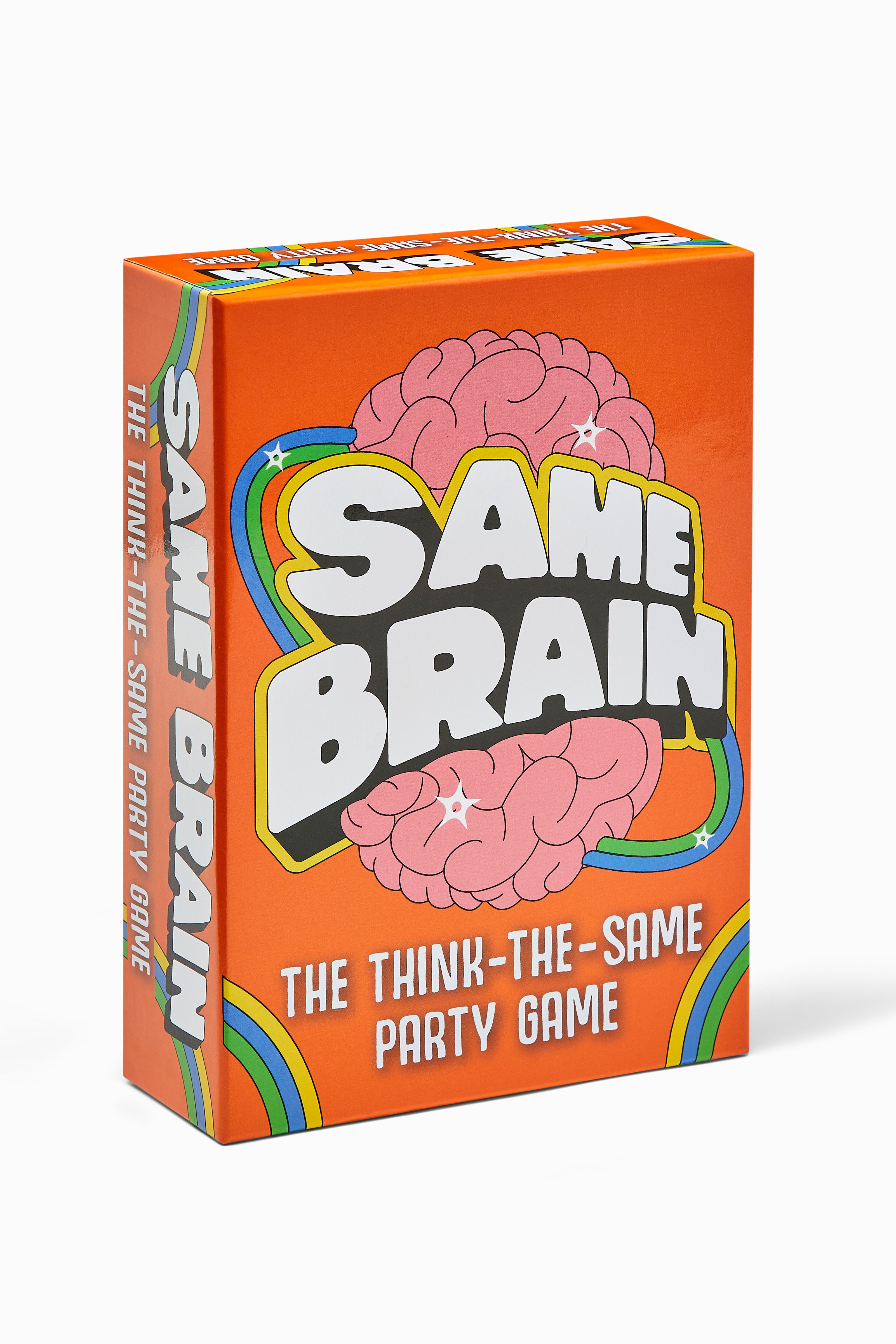 To play Same Brain, you'll first draw a category card from the deck. Then, secretly list three items on your whiteboard from the given category in the order that you think is most appropriate.