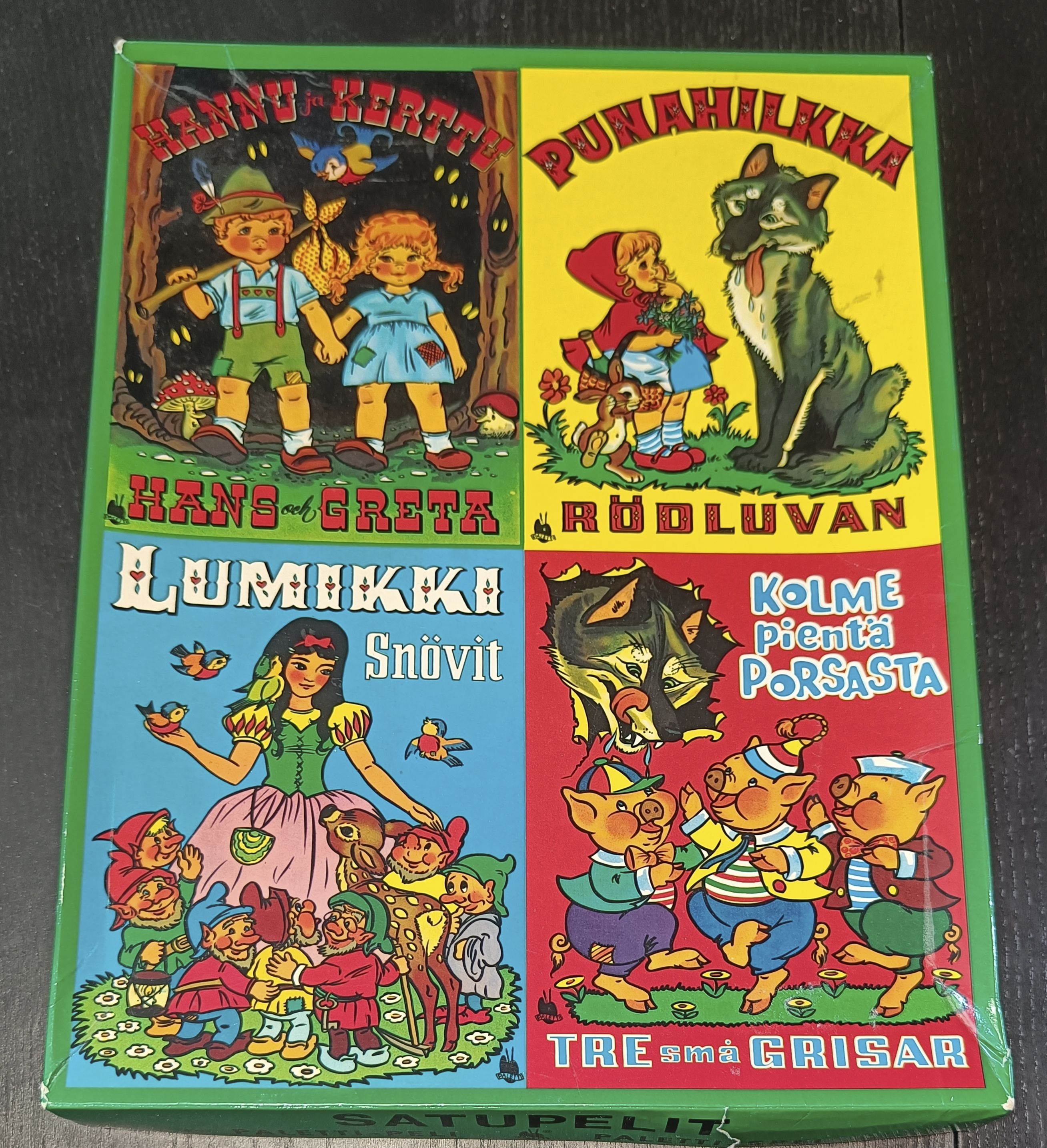Descrizione: This is compilation of four fairy tale themed roll and move games: Hansel & Gretel, Little Red Riding Hood, Snow White and Three Little Pigs.