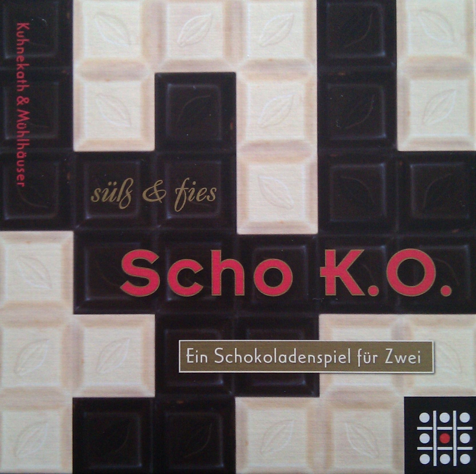 Scho K.O. is similar to Schokoly, but is for only two players and consequently has only two colors of chocolate and red specials printed on the tiles.