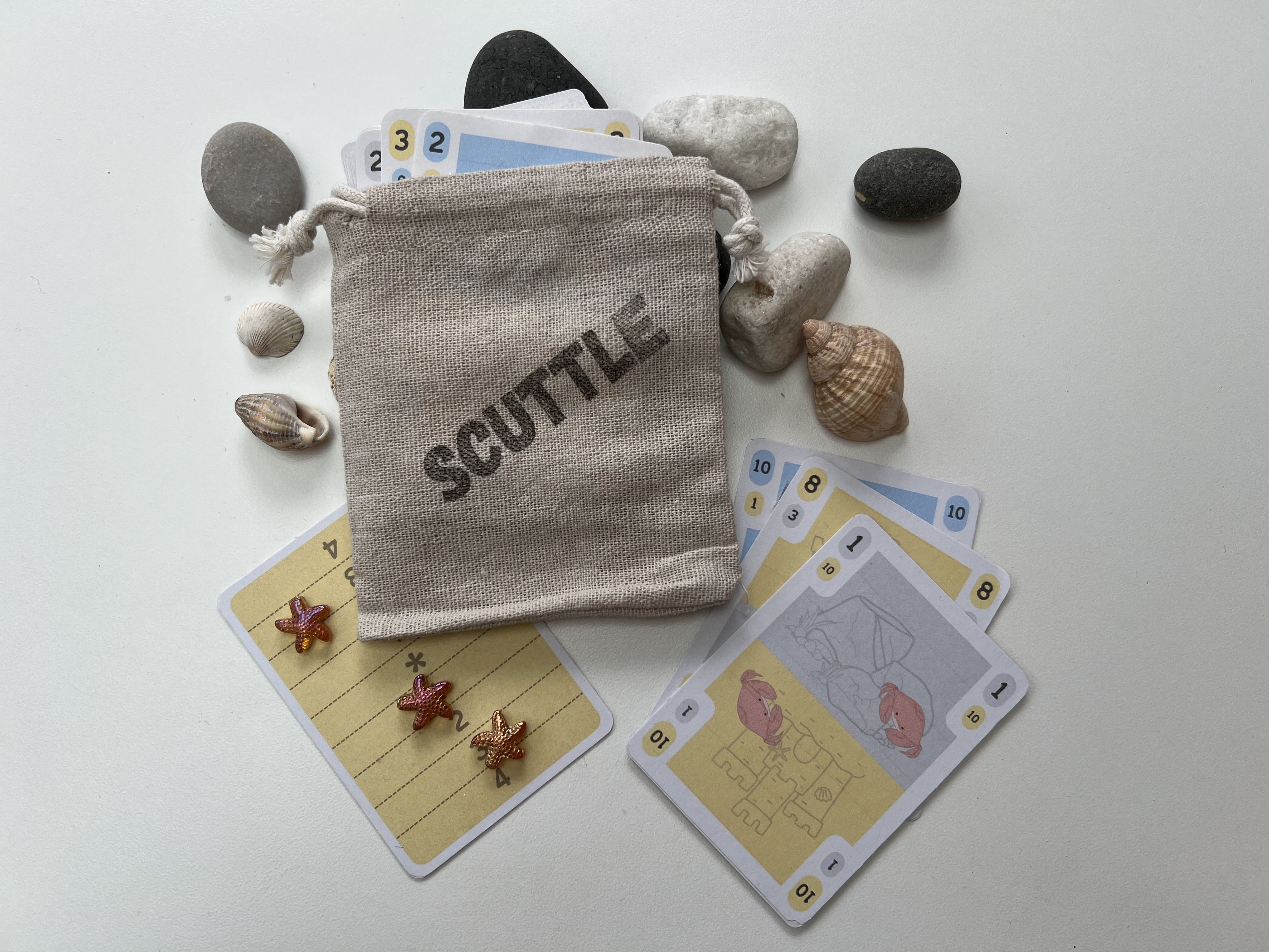 Descrizione: Claude and Michelle are tired of arguing over which one of them should lead the crabs of Scuttlington Bay. Gathering their friends to help they will battle it out to finally prove who deserves to be top crab. This is a light and exciting 2-player trick taker with area control and tug-of-war scoring mechanics. The first edition is a small print run with limited release in the UK.