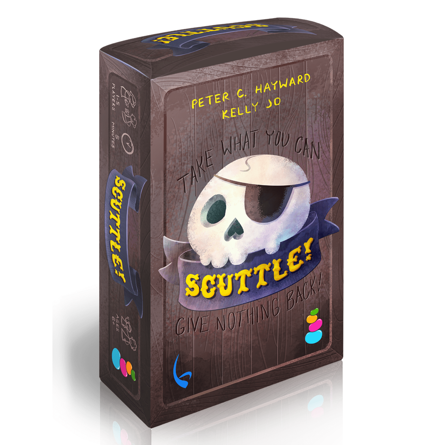 'Scuttle!' is a card game for 1-5 valiant pirates, suitable for players as young as 6. Based on the classic game Cuttle, Scuttle! has been infused with the drama of the high seas thanks to creative updated rules by Peter C. Hayward. With gorgeous, adventurous art by Kelly Jo, Scuttle! is fun for the whole family.