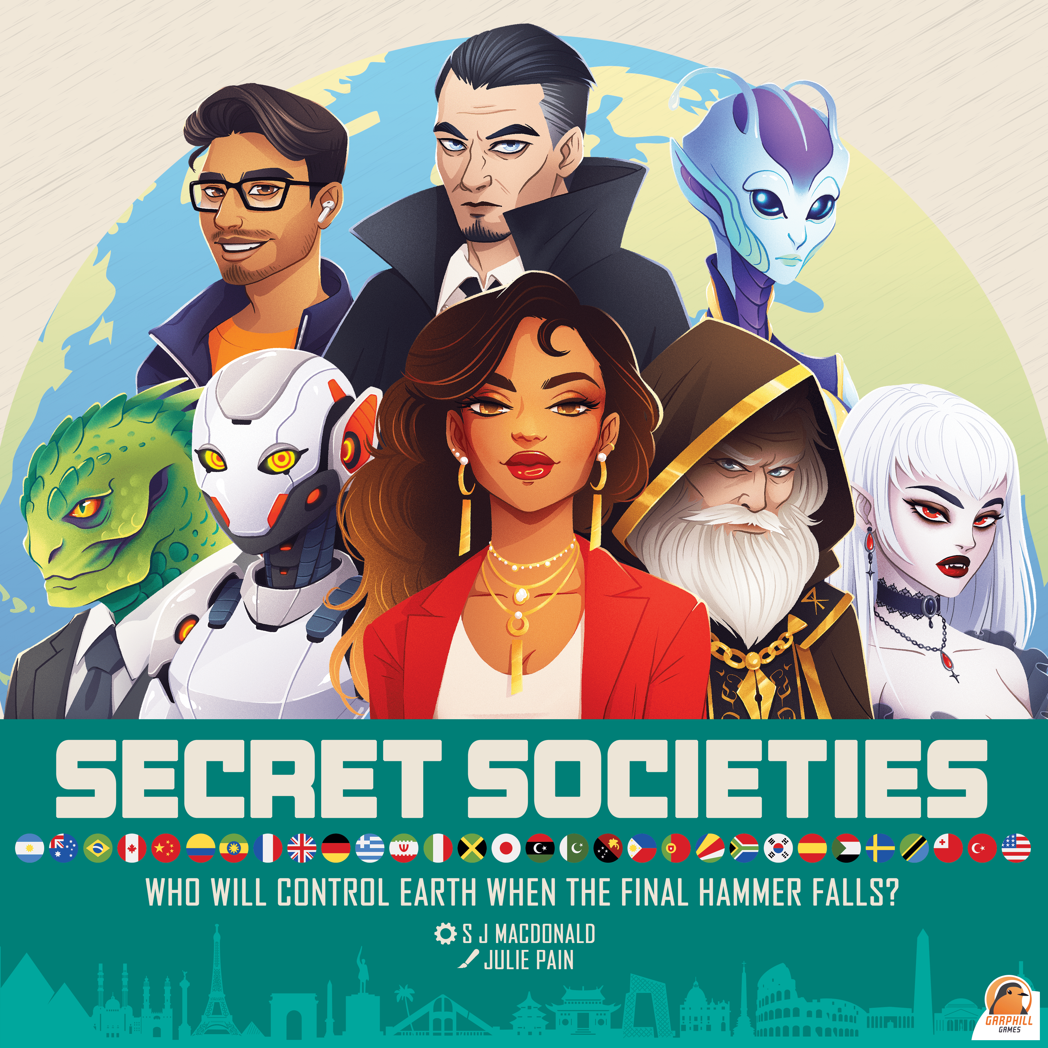 Descrizione: For centuries Earth’s Secret Societies have waged a hidden war vying for control of the world’s territories. But now, a final truce has been agreed: one auction will decide it all. Don’t be fooled, this is no friendly peace. Each society will do everything in their power to sway the balance of the auction in their favour. Those who are successful will be able to harness the already existing industry of their countries for their own enrichment or set the citizens to work on their own nefarious projects! The time has come… Who will control the Earth when the final hammer falls? The aim of Secret Societies is to gain the most Power by outbidding and outsmarting your opponents to establish your institute as the one most deserving of total governance. Step into the role of a highly unique Secret Society, equipped with various tools and abilities to help give you the edge over the competition. Over 7 Rounds you will gain Income, Bid for Deeds, deploy Agents, start Projects, make Investments, and seek to control the all-important Conferences. Not all lands are created equal! It will be your task to utilise your unique skills and advantages to claim the Deeds that best suit your agenda. —description from the publisher