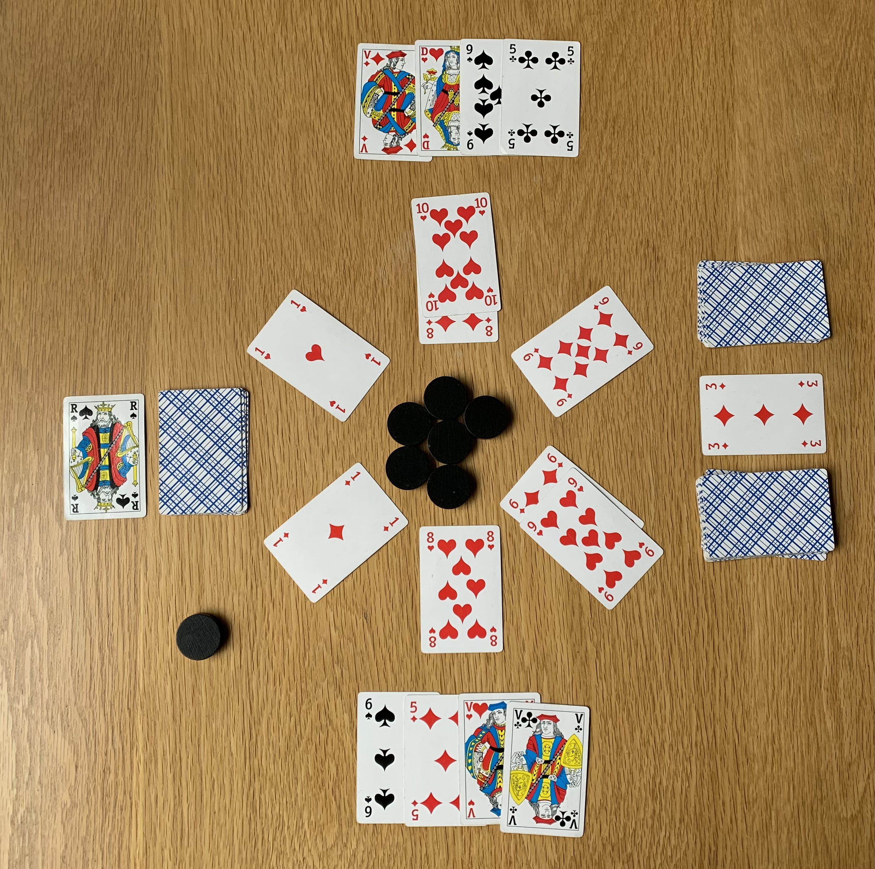 Descrizione: A tactical card game of sequences, sets, and timing — played in a circle. Learn how to play: You can find the game rules in the Files section (English and Dutch). SEP: Circle of Sevens is a tactical two-player card game played in a shared circle. Create combinations of matching or consecutive cards to earn tokens. Combinations can be formed across the entire circle — not just adjacent cards. Action cards allow you to disrupt the circle and create new opportunities. The first player to collect all seven tokens wins instantly — SEP! How it works: [*]Place number cards into a shared circular layout [*]Create sets (same value) or sequences (same suit) [*]Earn tokens for each combination you create or extend [*]Use action cards to remove cards and change the game state Why SEP is unique: [*]A shared circular play area instead of rows or grids [*]Combinations can span the entire circle [*]Constant interaction between players [*]Simple rules with tactical depth SEP combines tactical positioning, timing, and disruption in a compact and highly replayable format.