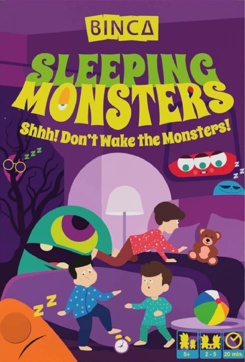 Descrizione: It was a sleepover like no other, a group of friends open their eyes to find the bedroom filled with dozing monsters and scattered noisy toys as traps. Their mission? Sneak past these monsters to escape. Tread lightly, though - too much noise, and an Angry Monster may stir! Sleeping Monsters is an exciting and suspenseful addition card game where the player with the best strategy, wins! ULTIMATE CARD GAME OF SUSPENSE: Binca Sleeping Monsters is a thrilling card game full of surprises, laughter and fast-paced action. Plan your moves carefully to avoid waking the grumpy monsters and claim victory! INCLUDES: 55 Monster Cards, 55 Toy Cards & a Rules Sheet. SNEAKY FUN FOR THE WHOLE FAMILY: Designed for ages 5+, this family-friendly card game can be enjoyed by everyone who loves suspense, surprises, and a little friendly competition. Whether it's a quick round before bed or at a game night, Sleeping Monsters guarantees laughter & fun for all ages! LEARN COUNTING THROUGH PLAY: While enjoying the hilarious gameplay, this card game also helps build essential skills like strategic thinking, counting & addition making it both entertaining and educational. PERFECT GIFT FOR 5+ YEARS: Combining fun and learning, Sleeping Monsters makes a great gift for birthdays, parties, holidays, or any celebration with loved ones. HOW TO WIN: At each turn, strategically place your toy cards to get the most "Z's" without waking the grumpy monster up. The player with the most number of "Z's", wins the game. TRAVEL-FRIENDLY: Compact and portable, Sleeping Monsters is perfect for road trips, flights, and train rides, providing endless fun wherever you go. EASY TO LEARN & PLAY: With simple rules and quick setup, this game is ideal for 2-5 players of all ages. Each round lasts about 20 minutes and offers endless replayability with unique challenges every time. —description from the publisher