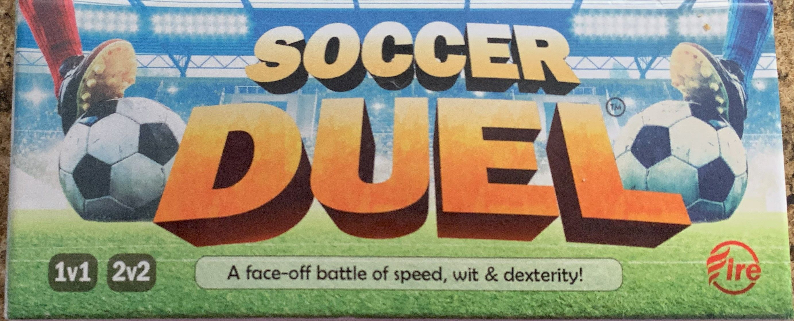 Descrizione: Soccer Duel includes 84 tiles. 80 show a fourth of either 1 or 2 soccer balls of 6 diff colors/patterns. Other 4 are 3 15-second "yellow card" tiles and 1 30-second "red card" tile. 2-Player game: each player draws 6 tiles and places them facedown in front of themselves. They then pick 1 to play faceup to their tableau as a starting tile. Mix the rest facedown and place between the 2 players. Players then simultaneously race to build their tableaus by placing tiles in them. Players may use one te faceup tiles in front of them or draw one of the facedown tiles in the middle. Tiles must be placed adjacent to existing tiles and must be placed so that any soccer ball quadrants on adjacent tiles line up and match in terms of color/pattern. If you can't play a tile, discard it to your box/ If you draw a "yellow card" or "red card" tile, you must wait the indicated amount of time (15 or 30 seconds) before you being playing again. Then discard the tile and draw another. After playing or discarding a tile, draw another from the pile. Once all tiles have been played, players swap their discard boxes then use their opponent's discarded tiles to fill out their tableau. Player who makes the most completed soccer balls wins.