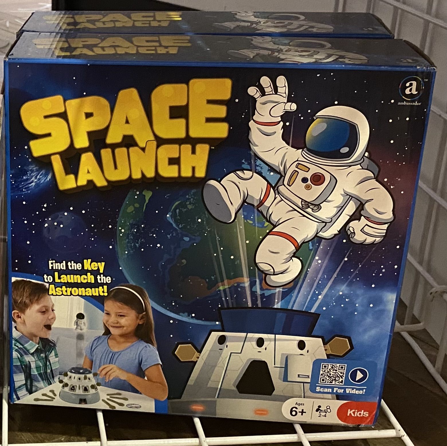 Descrizione: Astronauts take turns spinning the wheel to reveal keys inside the game’s cone-shaped space station gadget. Players insert the keys into slots, which eventually launchs an astronaut figure out. The first player to launch their astronaut wins.