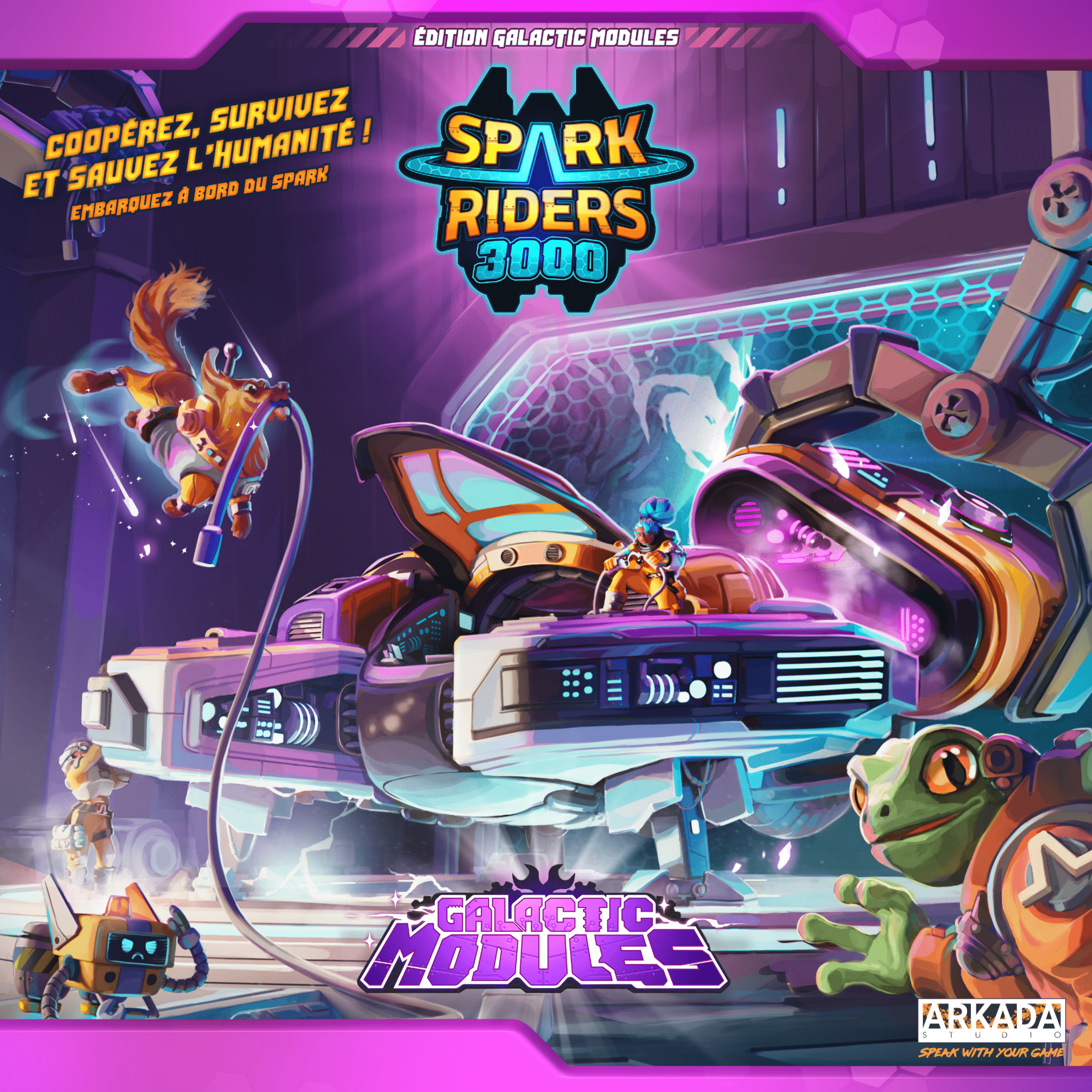 Galactic Modules is an expansion for Spark Riders 3000, an hybrid single player/co-operative tower defense and survival game in which players must coordinate their actions to ensure the success of their mission. Each scenario is different and you will have to adapt quickly to avoid seeing your ship destroyed and its cargo intercepted by alien pirates.