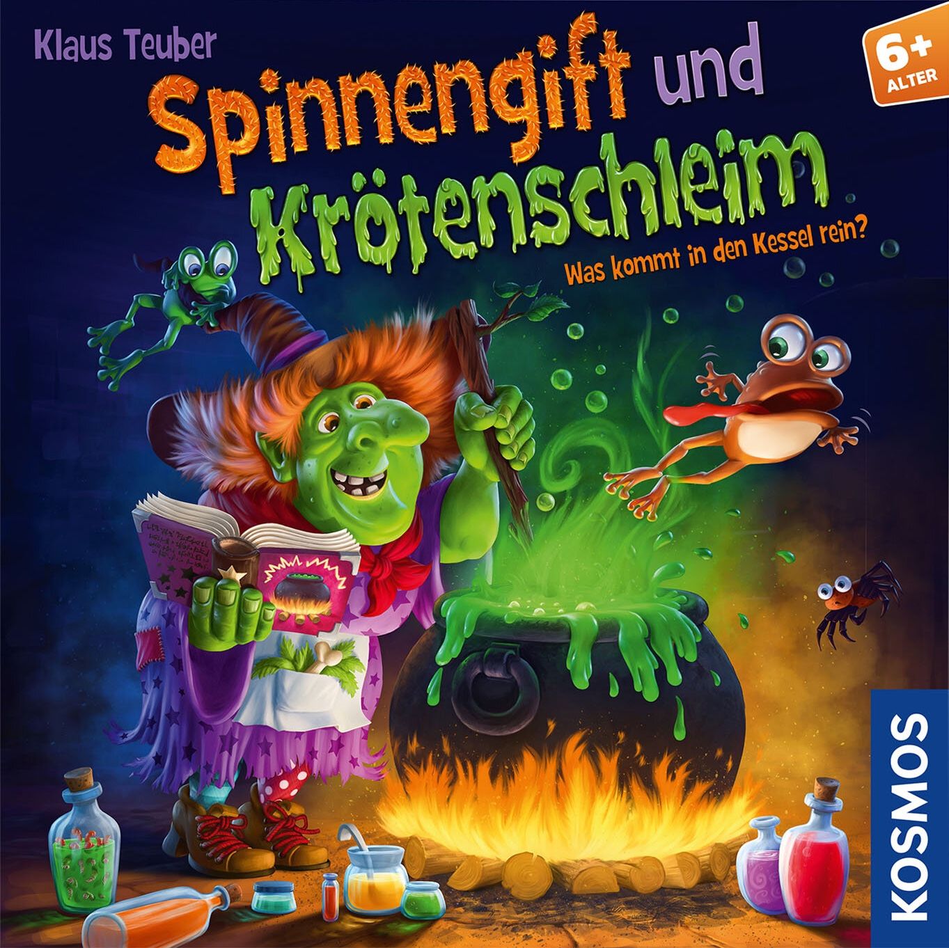 In Spinnengift und Krötenschleim ("Spider Venom and Toad Slime"), all the players need to remember where to find the individual ingredients. Whoever finds the right ingredients may add a chip to the magic cauldron, and chip by chip that cauldron will fill – then the monsters will appear! In the end, whoever has the most witch orders and monsters wins.